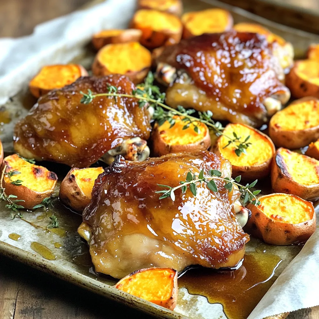The base of this dish is simple yet satisfying. I choose chicken thighs for their rich flavor and tenderness. Sweet potatoes add a sweet touch and a nice texture. Maple syrup brings a delightful sweetness that balances the savory elements.