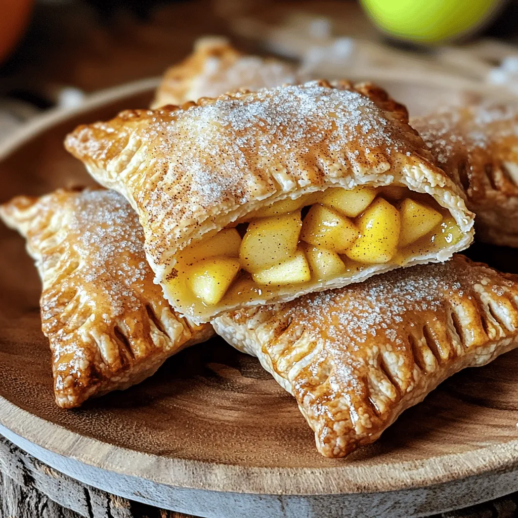 The ingredients for Air Fryer Cinnamon Sugar Apple Hand Pies are simple and fun to gather. Here’s what you need: - 2 large apples, peeled, cored, and diced - 1 tablespoon lemon juice - ½ cup brown sugar, packed - 1 teaspoon cinnamon - 1 tablespoon all-purpose flour - 1 package refrigerated pie crusts (2 crusts) - 1 egg, beaten (for egg wash) - 2 tablespoons granulated sugar (for topping) - 1 teaspoon cinnamon (for topping) Each ingredient plays a key role in creating a delicious hand pie. The apples bring sweetness and texture. Lemon juice adds a bright zing. Brown sugar enhances the pie’s rich flavor. Cinnamon offers warmth and spice. The flour helps bind the filling. The pie crusts make everything come together, creating that crispy outer layer. The egg wash gives a golden finish, while the sugar and cinnamon topping adds an extra crunch. These ingredients are easy to find and will make your pies shine. Start by tossing the diced apples in a bowl. Add lemon juice, brown sugar, cinnamon, and flour. Mix them well to coat the apples. Let the mixture sit for 10 minutes. This resting time helps the flavors blend nicely. Take one pie crust from the package. Roll it out on a floured surface to avoid sticking. Cut the crust into 4 equal squares. Keep the sizes even for uniform cooking. Take a square and place about 1-2 tablespoons of the apple mixture in the center. Leave some space around the edges for sealing. Fold the crust over to form a triangle or rectangle. Press the edges firmly to seal them. Use a fork to crimp the edges for a nice look. Repeat this step with the other squares and apple filling. Preheat your air fryer to 350°F (175°C). Brush the tops of the hand pies with the beaten egg. In a bowl, mix granulated sugar with cinnamon, then sprinkle this topping over the pies. Arrange the hand pies in the air fryer basket in a single layer. Make sure they do not touch each other. You may need to cook them in batches. Air fry for 10-12 minutes or until they turn golden brown and crispy. Check them halfway through and flip if needed for even cooking. Let the pies cool for a few minutes before enjoying. To ensure your hand pies cook evenly, preheat your air fryer to 350°F (175°C). This step helps set the heat before cooking. Arrange the hand pies in a single layer in the basket. Avoid overlapping them. This allows hot air to flow around each pie, giving you a crisp crust. Use a fork to seal the edges of the pies. This not only ensures a good seal, but it also adds a nice touch. Press down firmly on the edges and then crimp them. This helps keep your filling inside. Serve your hand pies warm. Dust them with powdered sugar for a sweet finish. Place them next to a scoop of vanilla ice cream or a dollop of whipped cream. The cold creaminess pairs well with the warm, spiced apples. You can also serve them with a drizzle of caramel sauce for added sweetness. The contrast of warm and cold makes each bite delightful. Factors like the size of your hand pies may affect cooking time. Smaller pies may cook faster, while larger ones may need more time. Start with 10 minutes, then check for doneness. To check, look for a golden brown color on the crust. You can also gently press on the pie. If it feels firm, it’s likely done. If you’re unsure, air fry for an extra minute and check again. This way, you ensure a perfectly cooked hand pie every time. {{image_2}} You can switch up the apples for other fruits. Pears make a tasty filling with a soft, sweet bite. Berries, like blueberries or raspberries, add a pop of tartness. Just remember to adjust the sugar based on the fruit's sweetness. You can also sprinkle in spices like nutmeg or ginger to deepen the flavor. While store-bought crusts are easy, you can make your own for a special touch. A homemade pie crust gives a fresh taste. If you need a gluten-free option, look for gluten-free pie crusts in stores. You can also make one using almond or oat flour. Toppings can change the vibe of your pies. Instead of granulated sugar, try honey or maple syrup for a different sweetness. You can mix in chopped nuts or chocolate chips for extra crunch or richness. These little changes can make a big difference in taste! To keep your hand pies fresh, store them in the fridge. Use an airtight container to prevent them from drying out. Placing parchment paper between layers can help keep them crisp. To reheat in an air fryer, preheat it to 350°F (175°C). Place the hand pies in a single layer. Heat for about 4-5 minutes. This method keeps them crispy. You can also use a microwave, but that may make them soft. If you choose this, heat them for 30 seconds. Check if they are warm enough; repeat if needed. You can freeze hand pies before or after cooking. If you freeze them uncooked, place them in a single layer on a baking sheet. Once frozen solid, transfer them to a freezer bag. To thaw frozen pies, leave them in the fridge overnight. For reheating, follow the air fryer method above. Cook for a few extra minutes since they are frozen. Air fryer cinnamon sugar apple hand pies can last for about 3 to 4 days in the fridge. Store them in an airtight container to keep them fresh. If you want to enjoy them longer, consider freezing them. They can stay good in the freezer for up to three months. Yes, you can make these hand pies ahead of time. Prepare the apple filling and pie crusts the day before. Just store the filling in the fridge. You can assemble the hand pies right before you plan to cook them. This method keeps them fresh and tasty. The best air fryer temperature for hand pies is 350°F (175°C). This temperature cooks them evenly and gives them a nice golden brown color. Cook them for 10 to 12 minutes. Always check them halfway through to ensure they cook well. Yes, you can use different apples for your hand pies. Some great options are Granny Smith, Honeycrisp, or Fuji apples. These apples add a nice balance of sweetness and tartness. Each variety will bri