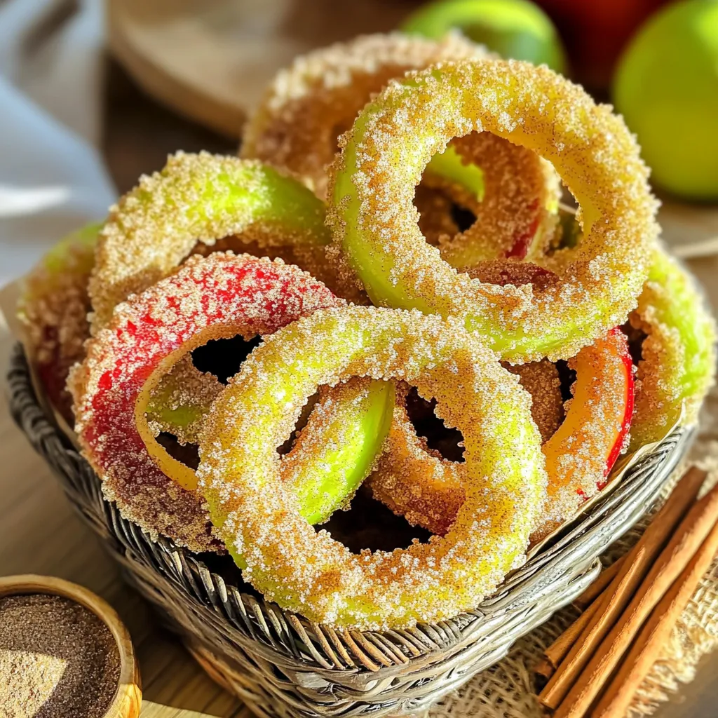 In a small bowl, mix together granulated sugar and a bit more cinnamon. Once the apple rings are done, take them out of the air fryer. While they are warm, sprinkle the cinnamon sugar mixture over them. Toss gently to coat all sides. Enjoy the sweet aroma and crunch!