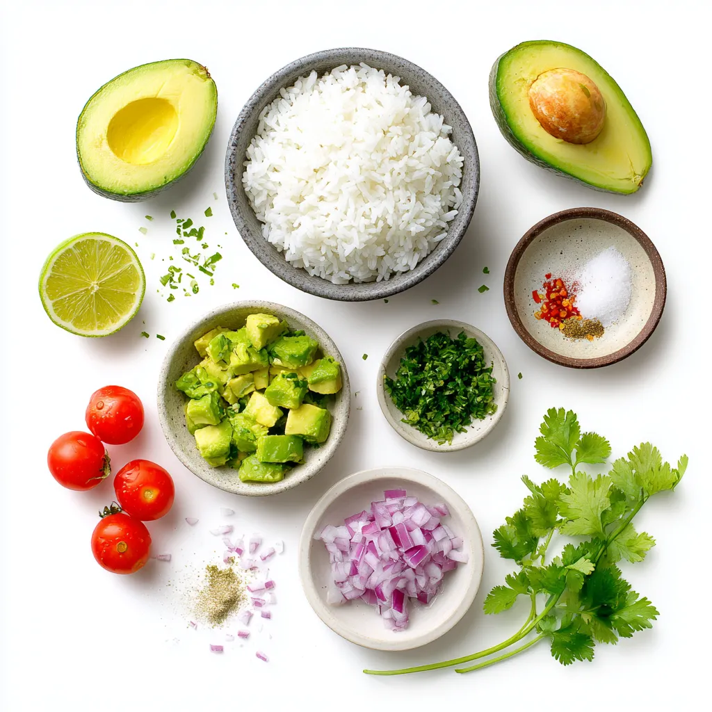 - Step 6: Fold in avocado and other fresh ingredients. In a large bowl, combine the fluffed rice with diced avocado, chopped cilantro, halved cherry tomatoes, and finely chopped red onion. If you like heat, add jalapeño. Gently fold everything together to keep the avocado intact. Adjust seasoning with more lime juice, salt, or pepper to taste.