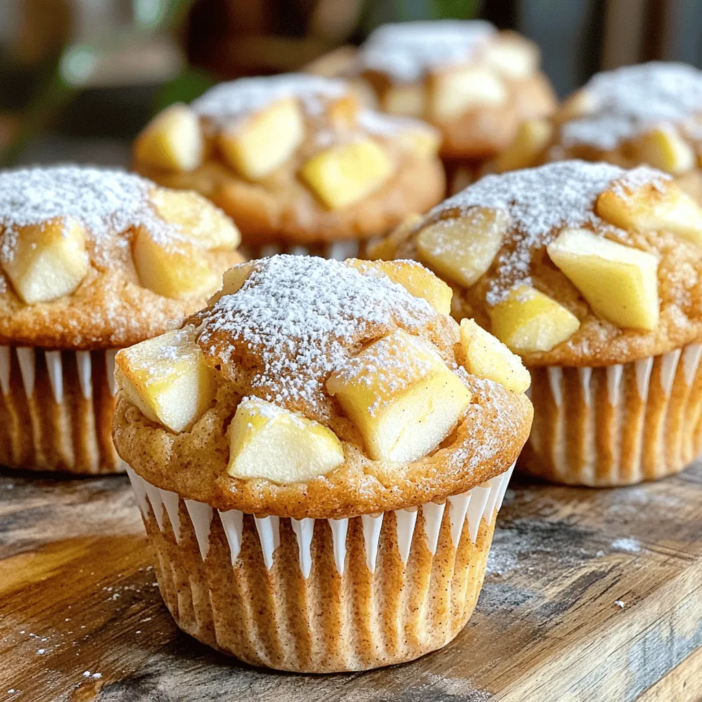 - 1/2 cup unsalted butter (for browning) - 1 cup all-purpose flour - 1/2 cup whole wheat flour - 1 teaspoon baking powder - 1/2 teaspoon baking soda - 1/2 teaspoon salt - 1 teaspoon ground cinnamon - 1/2 teaspoon nutmeg - 3/4 cup brown sugar, packed - 1/4 cup granulated sugar - 2 large eggs - 1 teaspoon vanilla extract - 1/2 cup plain Greek yogurt - 1 large apple, peeled, cored, and diced (preferably Granny Smith) - 1/2 cup walnuts or pecans, chopped (optional) You can swap the unsalted butter with coconut oil for a dairy-free option. If you want a lighter muffin, use only all-purpose flour. Instead of Greek yogurt, you can use sour cream. For a sweeter touch, consider using maple syrup instead of granulated sugar. If you prefer, any nut can replace walnuts or pecans. Using fresh ingredients is key. Fresh apples add crunch and flavor. Quality spices, like cinnamon and nutmeg, enhance the taste. Using fresh eggs makes the batter rise better. Using fresh butter gives muffins a rich flavor. Always check the date on your baking powder and soda to ensure they are active. This choice impacts how well your muffins rise and taste. Fresh ingredients lead to better results and more delight in every bite! To start, you'll brown the butter. Take 1/2 cup of unsalted butter and place it in a medium saucepan. Heat it over medium heat. Stir the butter often. Watch for it to foam and turn golden brown. This should take about 5 to 7 minutes. The butter will smell nutty when it’s ready. Once browned, remove it from heat and let it cool a bit. This step adds a rich flavor to the muffins. Next, we prepare the dry ingredients. In a bowl, mix 1 cup of all-purpose flour and 1/2 cup of whole wheat flour. Add 1 teaspoon of baking powder, 1/2 teaspoon of baking soda, 1/2 teaspoon of salt, 1 teaspoon of ground cinnamon, and 1/2 teaspoon of nutmeg. Whisk everything together until well combined. This mix provides the base for your muffins. Now, let’s move on to the wet ingredients. In a large bowl, combine the browned butter, 3/4 cup of packed brown sugar, and 1/4 cup of granulated sugar. Whisk this mixture until it looks smooth. Beat in 2 large eggs, one at a time. Mix well after adding each egg. Then, stir in 1 teaspoon of vanilla extract and 1/2 cup of plain Greek yogurt. This will create a creamy texture. Next, we combine the wet and dry ingredients. Gradually add the dry mix to the wet mix. Gently stir until just combined. Do not over-mix; it’s fine to have some lumps. Fold in 1 large apple, peeled, cored, and diced, plus 1/2 cup of chopped walnuts or pecans if you like. Now, fill your muffin cups about 3/4 full with the batter. Bake these in a preheated oven at 350°F (175°C) for 18 to 20 minutes. Check if they are done by inserting a toothpick. It should come out clean. Once baked, let the muffins cool in the tin for 5 minutes. Then, transfer them to a wire rack to cool completely. To serve, enjoy them warm. You can dust them with powdered sugar and arrange them on a wooden board. Pair them with apple slices for a fresh touch. Browning butter is key to rich flavor in these muffins. Start by melting the unsalted butter in a medium saucepan over medium heat. Stir it often. Watch for it to foam and turn golden brown. This process takes about 5-7 minutes. The butter should smell nutty when it is ready. If you see black bits, you cooked it too long. Let it cool slightly before mixing it into the batter. This step adds depth and warmth to your muffins. To get a soft and fluffy muffin, use both all-purpose and whole wheat flour. This mix gives the muffins a nice texture. When you mix the dry and wet ingredients, do it gently. You want to combine them just until they are mixed. Some lumps are okay. If you stir too much, your muffins can become tough. Remember, muffins are best when they are light and airy. Overmixing is a common mistake when baking muffins. It can lead to a dense texture. To avoid this, add the dry ingredients to the wet ingredients in two steps. Fold the mixture gently. Use a spatula to combine them without stirring too hard. This keeps air in the batter. When you add the diced apples, fold them in just until they are mixed. This way, your muffins will rise beautifully and have a tender crumb. {{image_2}} You can boost flavor in your muffins with spices or extracts. Add a pinch of cloves or ginger for warmth. A splash of almond extract can add a lovely nutty note. You can mix these spices to create your unique twist. Remember, a little goes a long way. Test your mix to find the right balance. If you need gluten-free muffins, swap all-purpose flour with a gluten-free blend. Check the blend for xanthan gum; it helps mimic gluten's texture. You can use almond flour for a nutty flavor. Just remember, different flours absorb moisture differently. Adjust liquid ingredients to keep the batter moist. Seasonal fruits add freshness. Try using diced pears or berries instead of apples. They bring a different flavor and texture. You can also mix in nuts like pecans or walnuts for crunch. Just fold them in gently so they spread evenly. This makes each bite a fun surprise. Store your muffins in an airtight container. This keeps them fresh and moist. Place a paper towel at the bottom of the container. It helps absorb any extra moisture. You can store them at room temperature for up to three days. If you want to keep them longer, refrigerate them for up to a week. Freezing is a great way to save muffins. Let them cool completely before freezing. Wrap each muffin in plastic wrap. Then, place them in a freezer-safe bag. This keeps them from getting freezer burn. You can freeze the muffins for up to three months. When ready to eat, simply thaw them overnight in the fridge. To reheat your muffins, preheat your oven to 350°F (175°C). Place the muffins on a baking sheet. Heat them for about 5 to 10 minutes. This will make them warm and soft again. You can also use a microwave. Heat each muffin for about 15-20 seco