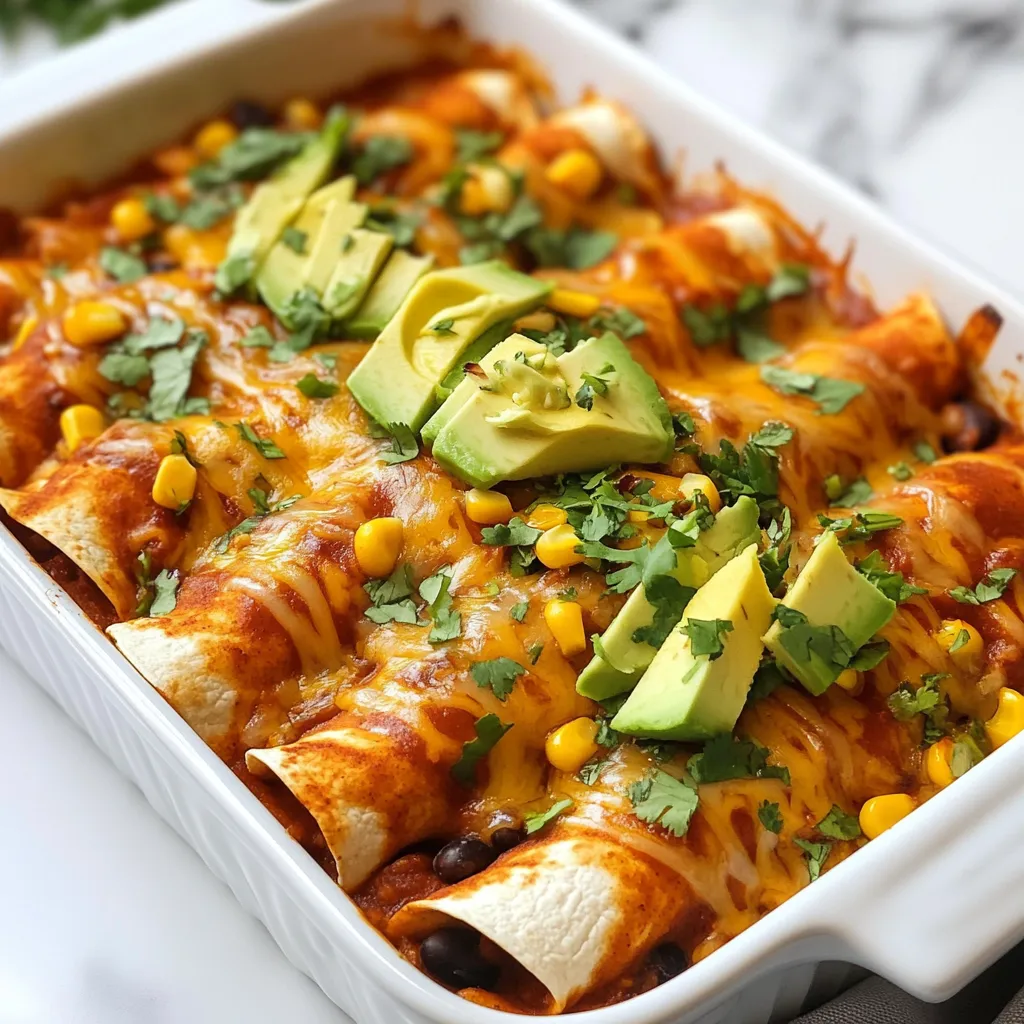 The base of these enchiladas is simple yet flavorful. Black beans provide protein and a rich taste. Corn adds a sweet crunch. The cheese brings everything together, melting beautifully as it bakes.