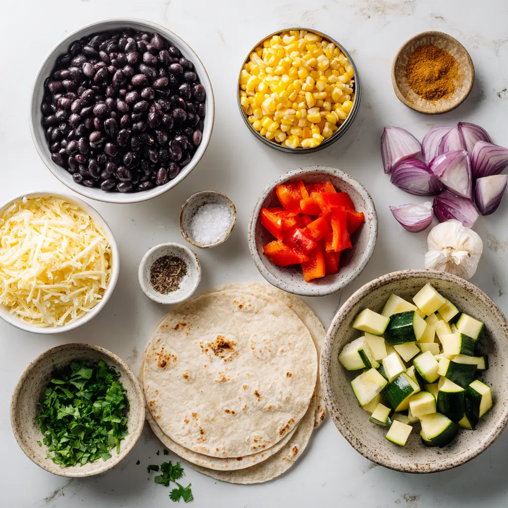 For the best black bean veggie quesadillas, gather these ingredients: