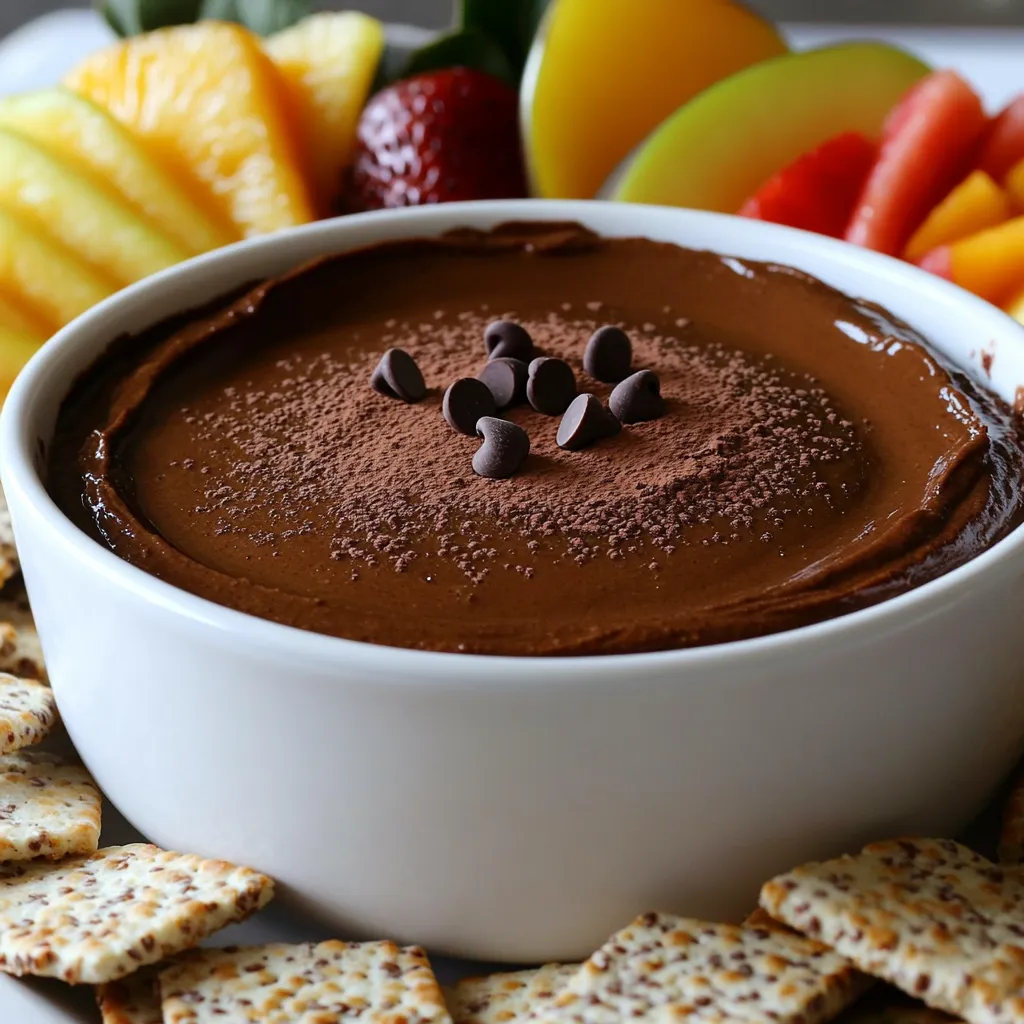 - Presentation Tips: Serve the dip in a stylish bowl, garnished with a sprinkle of cocoa powder or additional chocolate chips on top. Arrange fruit and crackers around the bowl for an appealing display.