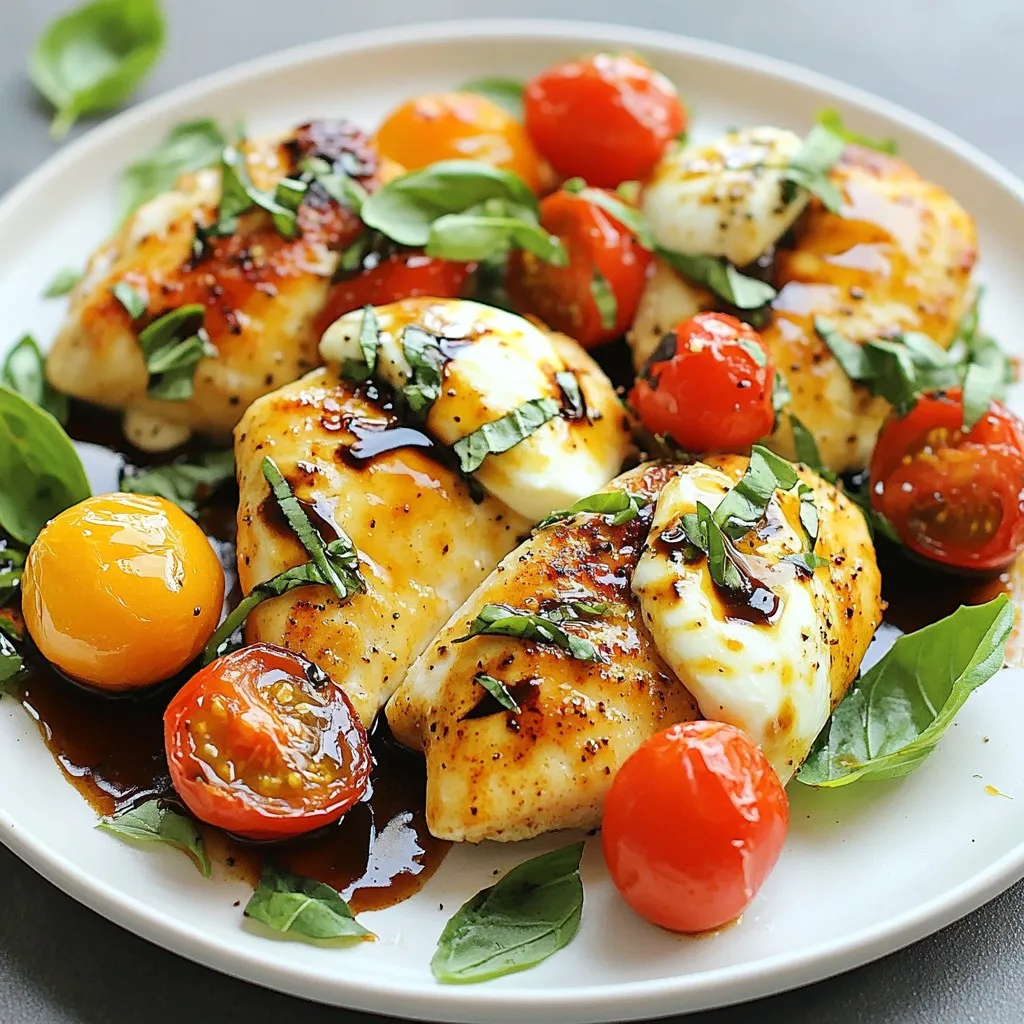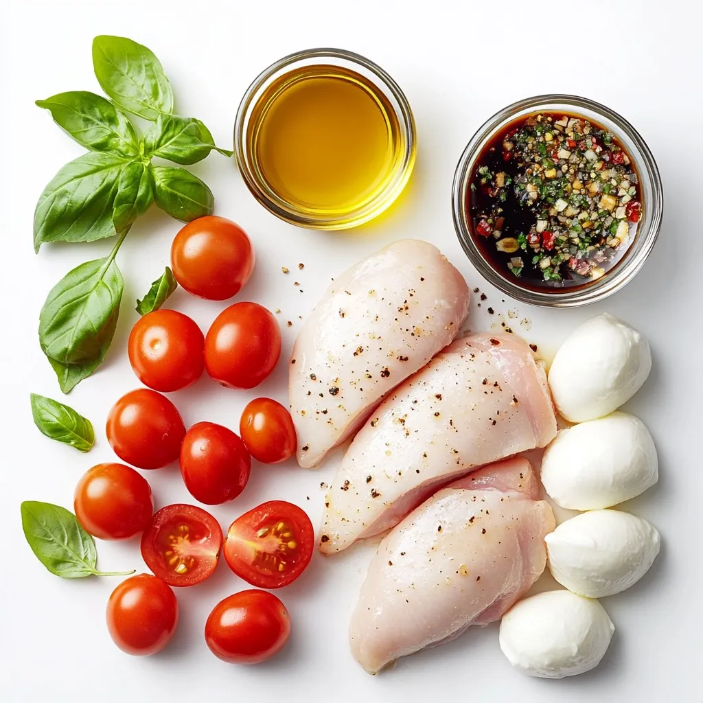 The main ingredients in this dish create a tasty balance. The chicken breasts serve as a great protein base. Their mild taste lets the other flavors shine. Cherry tomatoes add sweetness and a burst of color. Fresh mozzarella brings a creamy texture that melts beautifully. Lastly, fresh basil gives a bright, herby touch.