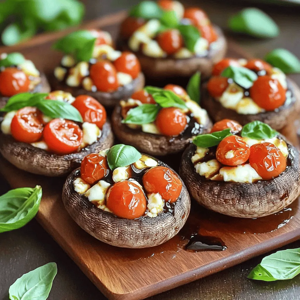 Portobello mushrooms are great for this dish. You can also use large button mushrooms if needed. Cherry tomatoes add sweetness, but you can swap them for diced regular tomatoes. Fresh mozzarella gives a nice melt, yet you can use shredded mozzarella if that’s what you have. Fresh basil is key for flavor, but dried basil works in a pinch. Balsamic glaze adds a sweet touch. If you can’t find it, mix balsamic vinegar with a bit of honey or sugar. Olive oil adds richness, but any cooking oil can work as a substitute. Garlic gives flavor; if fresh isn’t available, use garlic powder.