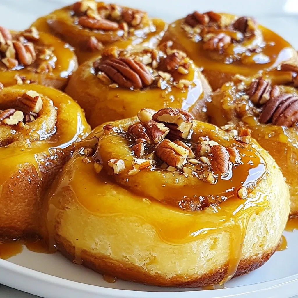 Drizzling extra caramel sauce makes a lovely finish. Just warm it slightly for easy pouring. You can also sprinkle chopped pecans on top for color and texture. This adds a nice touch before serving. Try to make each bun look inviting and delicious!