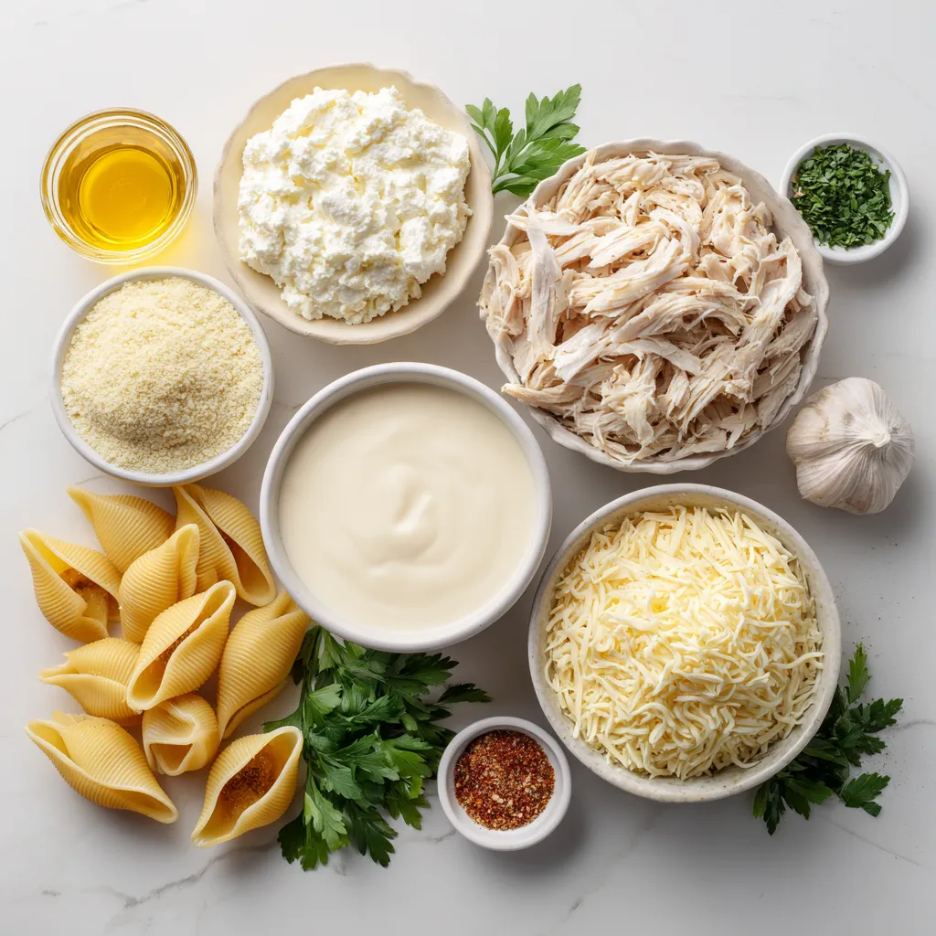 For Chicken Alfredo Stuffed Shells, you need simple, tasty ingredients. Here’s the list: