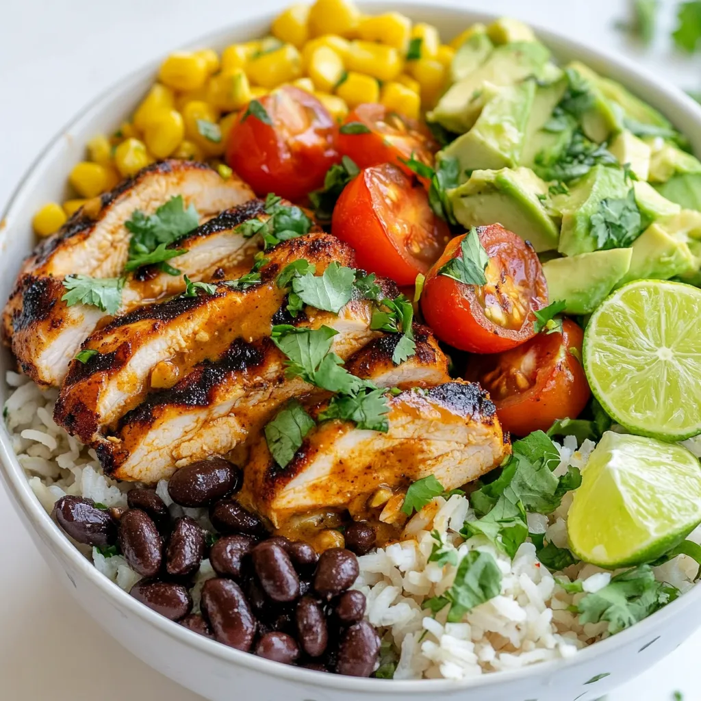 - 2 boneless, skinless chicken breasts - 1 cup brown rice (or quinoa) - 1 can black beans, drained and rinsed - 1 cup corn (fresh or frozen) - 1 tablespoon chipotle powder - 1 teaspoon smoked paprika - 1 teaspoon garlic powder - 1 teaspoon cumin - Salt and pepper to taste - 1 avocado, diced - 1 cup cherry tomatoes, halved - 1 cup shredded green lettuce - 1/4 cup fresh cilantro, chopped - Optional toppings: shredded cheese, salsa, sour cream To make your Chipotle Chicken Burrito Bowl shine, start with these fresh ingredients. The chicken breasts are the star of the meal. Marinate them with spices to infuse bold flavors. Chipotle powder gives it a smoky kick. The brown rice or quinoa serves as a hearty base. Both grains are healthy and filling. You can swap them based on your preference. Black beans add protein and fiber. Corn brings sweetness and color to the bowl. For toppings, don’t skip the avocado. It adds creaminess. Cherry tomatoes offer a juicy burst. Shredded lettuce adds crunch. Finally, cilantro brightens the dish. If you want, top it all off with cheese or salsa for extra flavor. You can customize this bowl to your liking. Use these ingredients as a guide. Enjoy your meal prep! {{ingredient_image_1}} Combine chipotle powder, smoked paprika, garlic powder, cumin, olive oil, salt, and pepper in a bowl. Mix them well. Take the chicken breasts and add them to the bowl. Ensure the chicken gets covered with the spice mix. Let it marinate for at least 30 minutes. This step builds flavor. You can also marinate overnight for a richer taste. First, rinse the brown rice under cold water. This will remove excess starch. In a pot, add the rinsed rice and chicken broth. Bring the mixture to a boil. After that, reduce the heat to low and cover the pot. Let it simmer for about 45 minutes. The rice will absorb all the broth and grow tender. Once done, fluff it with a fork to keep it light and airy. Heat a grill pan or skillet over medium-high heat. Remove the chicken from the marinade and place it in the pan. Cook for about 6-7 minutes on each side. Ensure the internal temperature reaches 165°F (75°C) for safety. Once cooked, let the chicken rest for 5 minutes. This keeps it juicy. Now, take a large bowl. Start by layering the cooked rice at the bottom. Add the black beans, corn, halved cherry tomatoes, diced avocado, and shredded lettuce on top. Slice the grilled chicken and place it on the vegetables in the bowl. Drizzle lime juice over everything. Finally, garnish with fresh cilantro for a burst of flavor. To get great flavor in your chicken, marinate it well. Mix chipotle powder, smoked paprika, garlic powder, cumin, olive oil, salt, and pepper in a bowl. Coat your chicken breasts evenly. Best Practices: - Use a glass or plastic dish for marinating. - Cover the dish tightly with plastic wrap or a lid. Recommended Marination Times: - Marinate for at least 30 minutes. - For deeper flavor, marinate overnight. Check your chicken for doneness with a meat thermometer. It should reach 165°F (75°C). Methods to Avoid Dry Chicken: - Let the chicken rest for 5 minutes after cooking; this keeps it juicy. - Avoid cooking on too high heat; medium-high is best. You can use brown rice or quinoa for your bowl. Quinoa cooks quicker and adds a nice texture. Suggestions for Using Quinoa or Other Grains: - Quinoa: Rinse it first, then use a 1:2 ratio of quinoa to broth. - Other grains: Try farro or barley for variety. Alternative Cooking Methods: - Rice Cooker: Follow the machine’s instructions. - Instant Pot: Use the manual setting and cook for about 22 minutes. Pro Tips Marinate for Maximum Flavor: Allowing the chicken to marinate overnight will intensify the flavors and make the meat more tender. Perfect Rice Cooking: To ensure perfectly cooked rice, avoid lifting the lid while it simmers, as this lets steam escape. Rest the Chicken: Letting the grilled chicken rest for a few minutes after cooking allows the juices to redistribute, making it juicier. Customize Your Bowl: Feel free to swap in your favorite veggies based on the season, such as bell peppers or zucchini, for added variety. {{image_2}} You can make this bowl meat-free. Replace the chicken with grilled veggies or tofu. Grilled bell peppers, zucchini, or mushrooms work great. For toppings, try black olives, guacamole, or a vegan cheese. This keeps the flavors bold while being plant-based. Switching your base can change the bowl. Use cauliflower rice for a low-carb option. Salad greens add freshness and crunch. You might also explore other grains, like farro or barley. These grains offer different textures and flavors, making it fun to mix things up. Want to play with flavors? Adding different spices can change the dish. Try adding chili powder for extra heat. You can also use marinades like teriyaki or barbecue for a twist. For a fusion flair, top your bowl with kimchi or jalapeños. These options add a zesty kick that’s sure to surprise your taste buds. To keep your Chipotle chicken burrito bowl fresh, follow these tips: - Refrigerate: Store leftovers in an airtight container. This helps keep moisture in. - Freeze: For longer storage, freeze in a freezer-safe container. Leave space for expansion. - Containers: Use glass or plastic containers with tight lids. They work best for keeping food fresh. When you want to enjoy your bowl again, here’s how to reheat it: - Rice: Put rice in a microwave-safe bowl. Add a splash of water. Cover with a damp paper towel. Heat for 1-2 minutes. - Chicken: Reheat chicken in a skillet over low heat. This keeps it juicy. - Tips: If you can, reheat everything separately. This keeps flavors and textures nice. How long can you store your burrito bowl? Here’s what to know: - In the fridge: Cooked bowls last about 3-4 days. - In the freezer: You can store them for up to 2-3 months. - Signs of spoilage: Look for off smells, changes in color, or mold. If you see any of these, it’s best to throw it away. You c