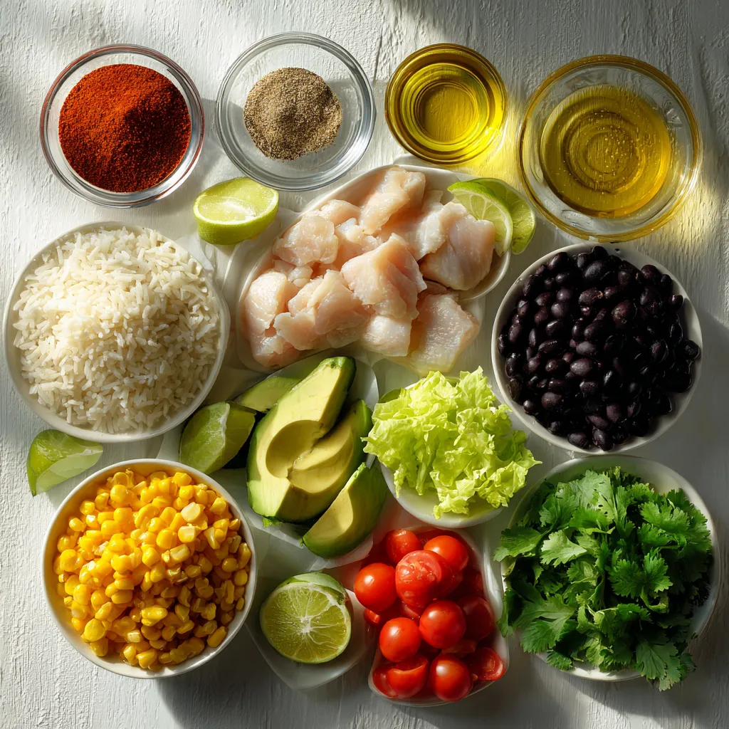 To make your Chipotle Chicken Burrito Bowl shine, start with these fresh ingredients. The chicken breasts are the star of the meal. Marinate them with spices to infuse bold flavors. Chipotle powder gives it a smoky kick.