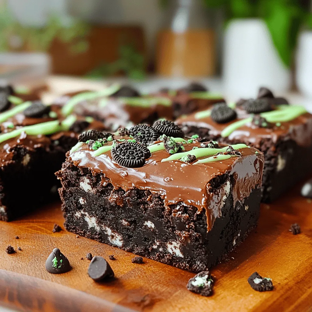 For decoration, drizzle the mint icing over the cooled brownies. Use a spoon to create a fun pattern. Crushed Oreos on top add a nice touch. You can also sprinkle some extra mint chocolate chips for color. For a festive look, add green food coloring to the icing. This will make your brownies pop at any gathering!