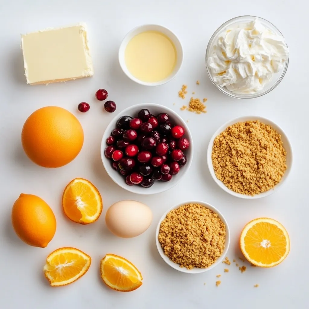 Each ingredient plays a key role. The cream cheese gives the cheesecake its rich texture. The graham cracker crumbs form a sturdy crust. The orange zest and juice add bright flavors. Fresh cranberries give a tart twist that balances the sweetness.