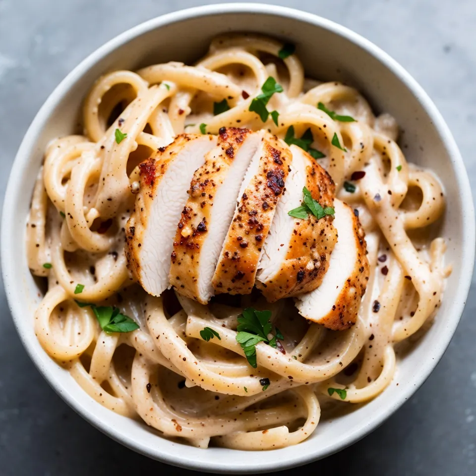 - Plate the creamy Cajun chicken Alfredo topped with a sprinkle of fresh parsley and a dash of red pepper flakes for extra heat, if desired.