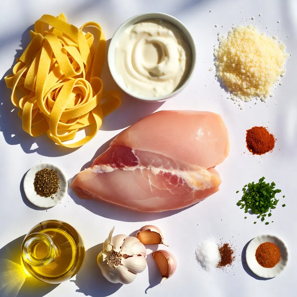 For this creamy Cajun chicken Alfredo, the main ingredients are simple yet flavorful. You will need two boneless, skinless chicken breasts, which provide a lean protein base. The fettuccine pasta adds a nice texture and absorbs the sauce well. Cajun seasoning brings a spicy kick, giving the dish its signature flavor. Olive oil helps to cook the chicken, adding richness.