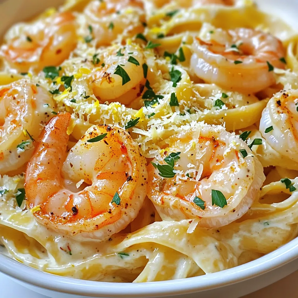 In the same skillet, add 3 cloves of minced garlic and sauté for 1 minute until it smells great. Then, pour in 1 cup of heavy cream. Stir constantly until it starts to simmer. Lower the heat and mix in 1/2 cup of grated Parmesan cheese, 1/2 teaspoon of salt, and 1/4 teaspoon of black pepper. Keep stirring until the cheese melts and the sauce becomes creamy. If it seems too thick, add some reserved pasta water to reach your desired consistency. Finally, add the cooked pasta and sautéed shrimp to the skillet. Toss everything together until well coated. Don’t forget to stir in the zest of 1 lemon and 1/4 cup of chopped fresh parsley. This adds freshness to your dish.