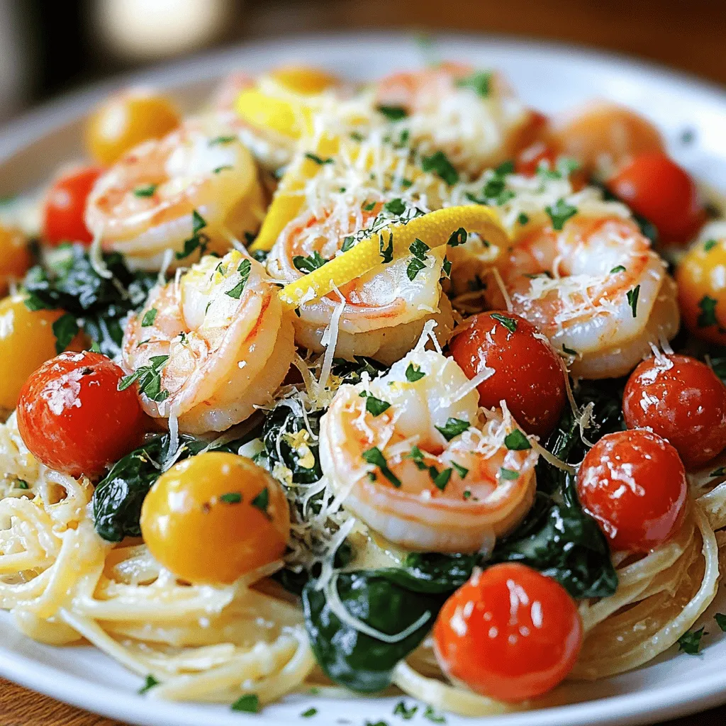 For veggies, I love using cherry tomatoes. Their sweetness complements the shrimp. Spinach adds color and nutrition. Grated Parmesan cheese gives a cheesy finish. Finally, fresh parsley brings a pop of green to the plate.