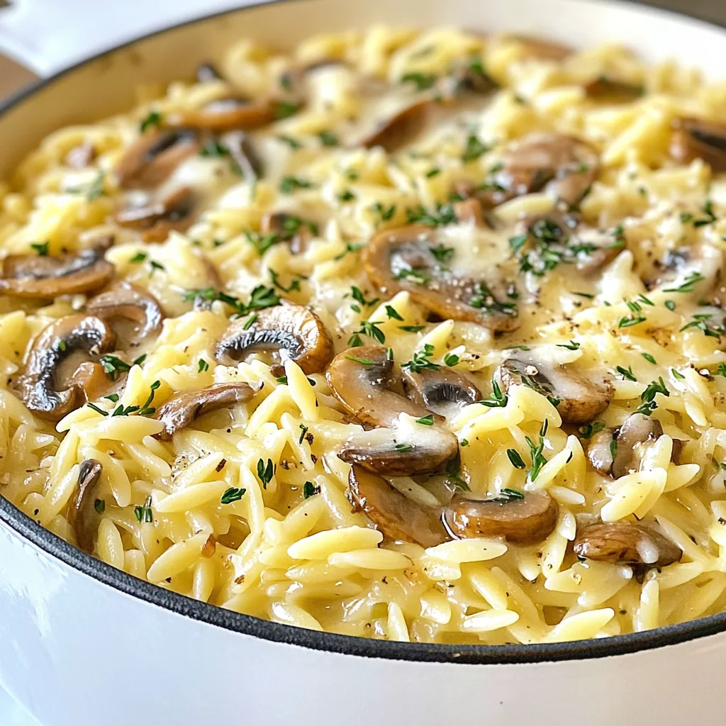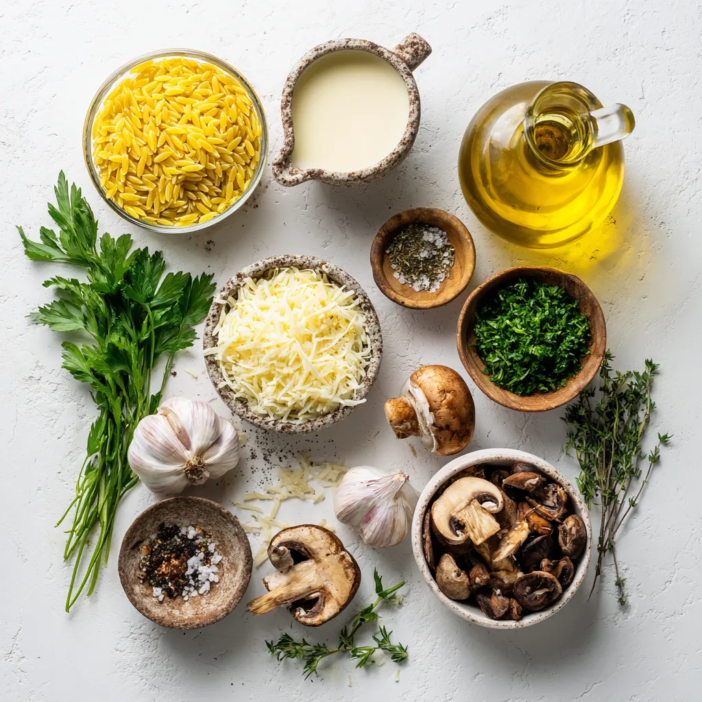Each ingredient plays a key role in creating rich flavors. The orzo pasta gives the dish a delightful texture. The cremini mushrooms add an earthy taste. The heavy cream and Parmesan cheese provide a smooth, creamy finish.