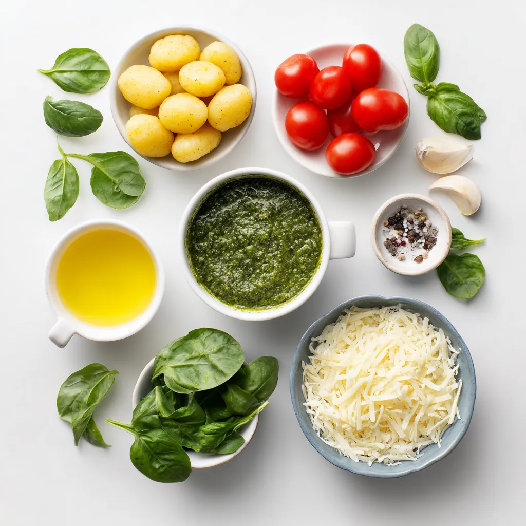 Gathering ingredients is the first step. Start with 16 ounces of potato gnocchi. I find fresh gnocchi works best. Next, you need 1 cup of fresh basil pesto. You can buy this or make your own. For creaminess, grab 1 cup of heavy cream.