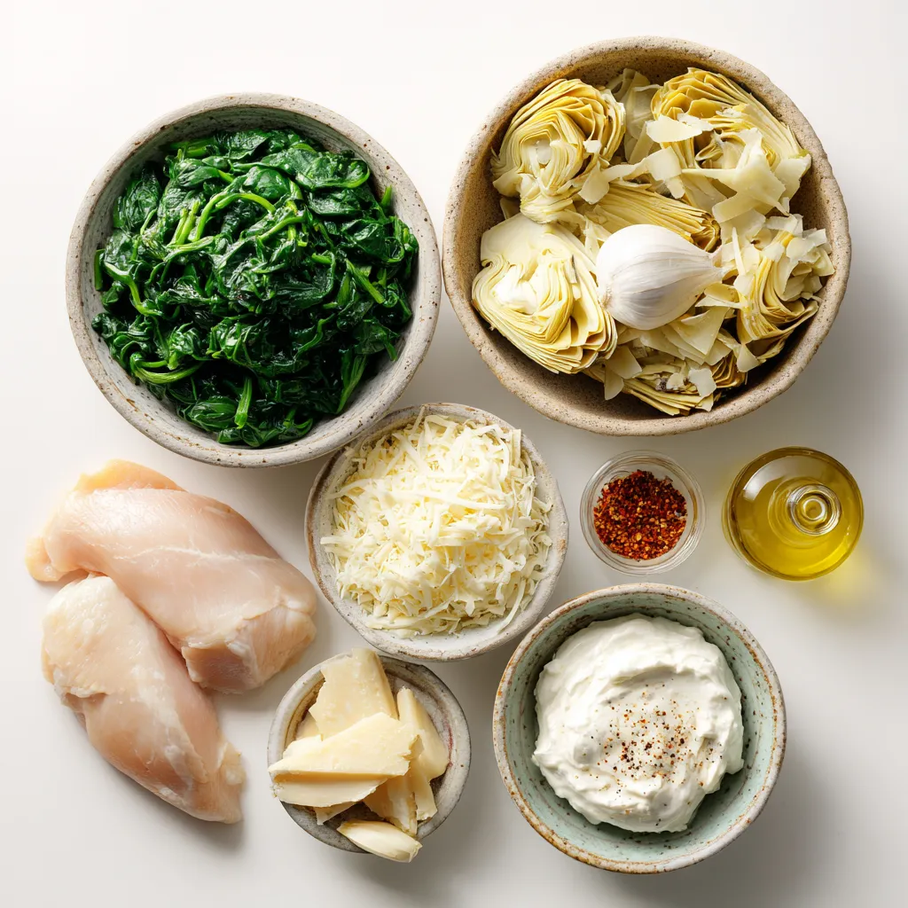 When you gather these ingredients, you set the stage for a tasty meal. Fresh spinach gives a nice color and adds nutrients. Artichoke hearts bring a unique flavor that pairs well with chicken. Cream cheese and sour cream create a rich and creamy sauce that makes this dish special. Mozzarella and Parmesan cheeses add a cheesy goodness that melts beautifully in the oven. Garlic adds a strong aroma and taste to the mix. Olive oil helps cook the garlic and keeps everything moist. Seasoning with paprika, salt, and pepper enhances the flavors.