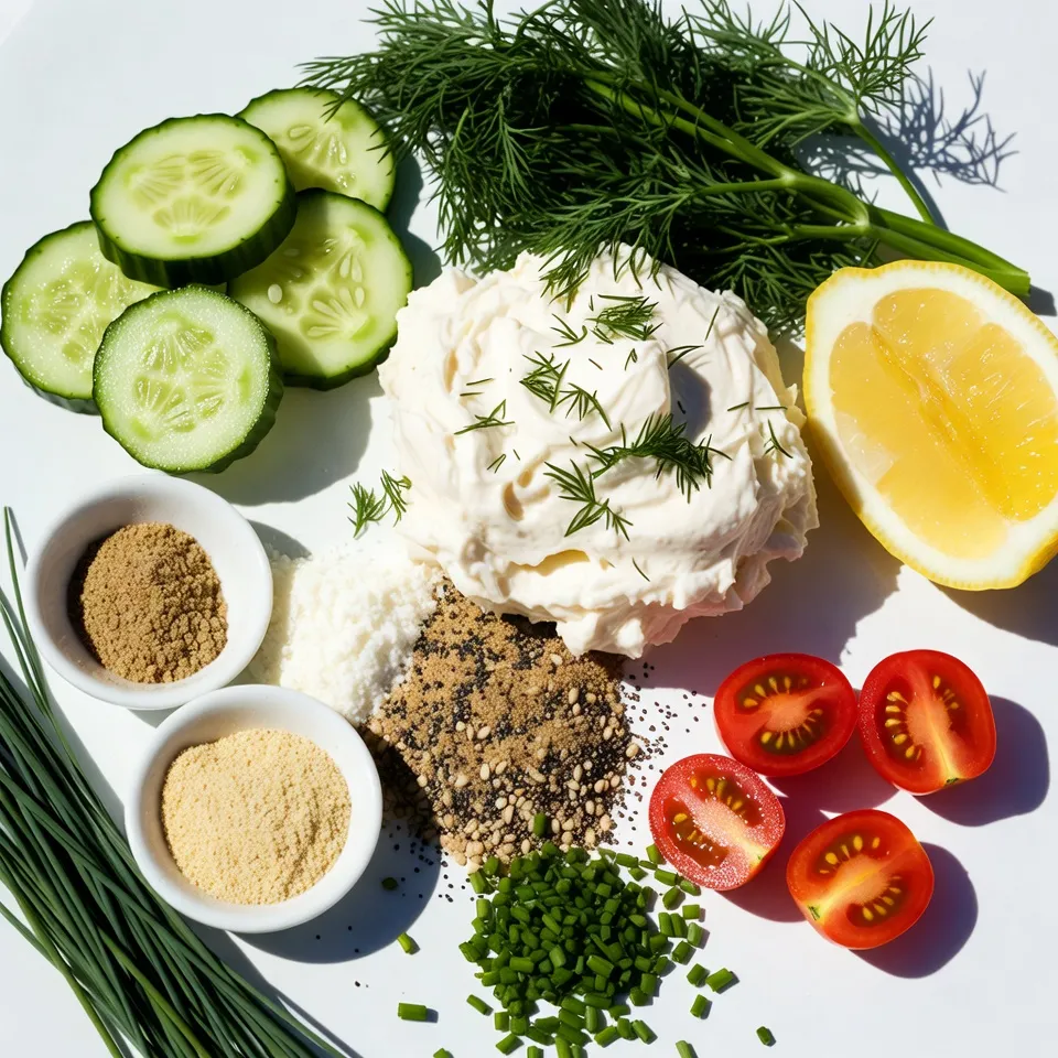 - In a mixing bowl, combine the softened cream cheese, fresh dill, lemon juice, garlic powder, and onion powder. Mix until smooth and well combined.