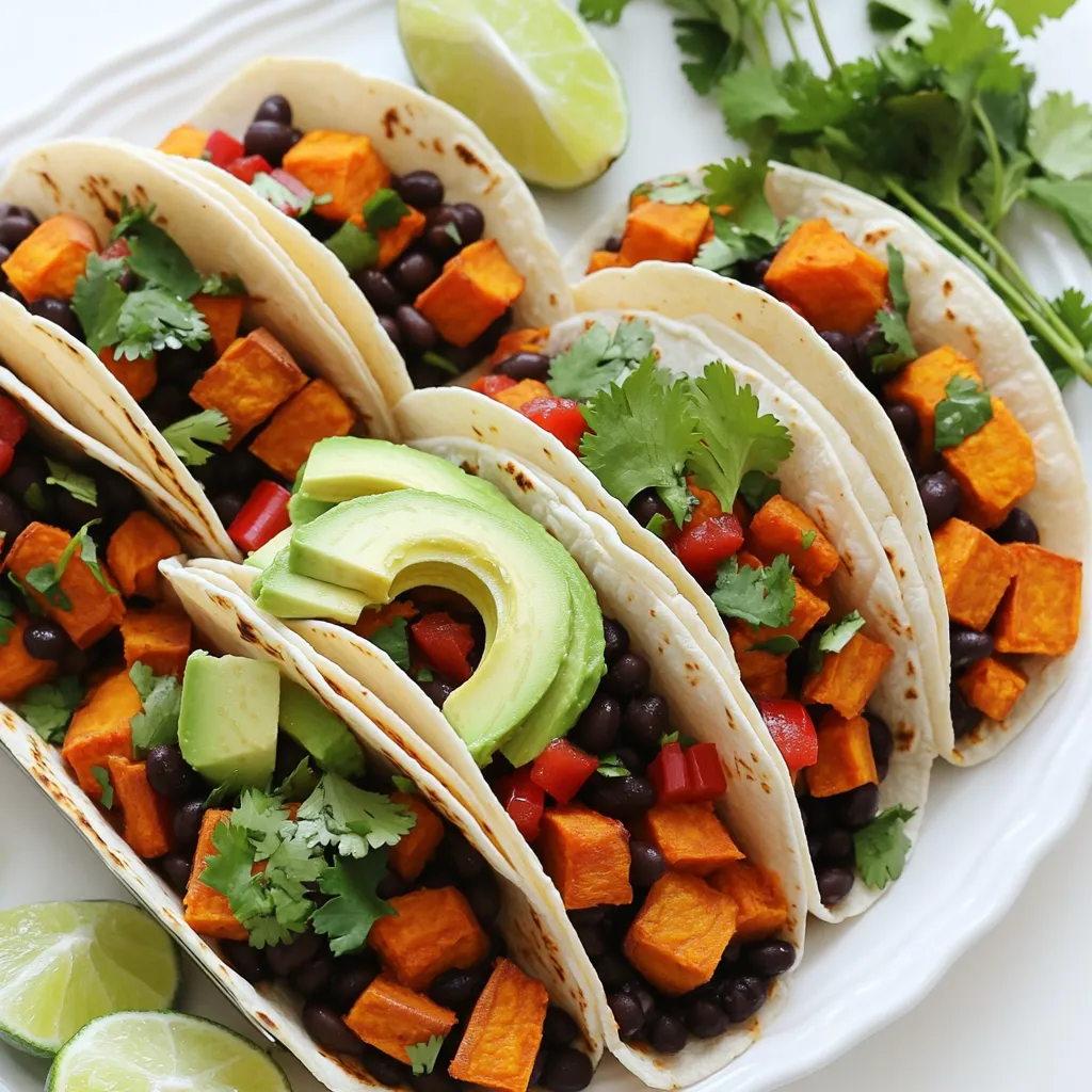 Sweet potatoes are the star of this dish. They add natural sweetness and a creamy texture. Black beans provide protein and fiber, making these tacos filling. The red bell pepper adds a nice crunch and color.