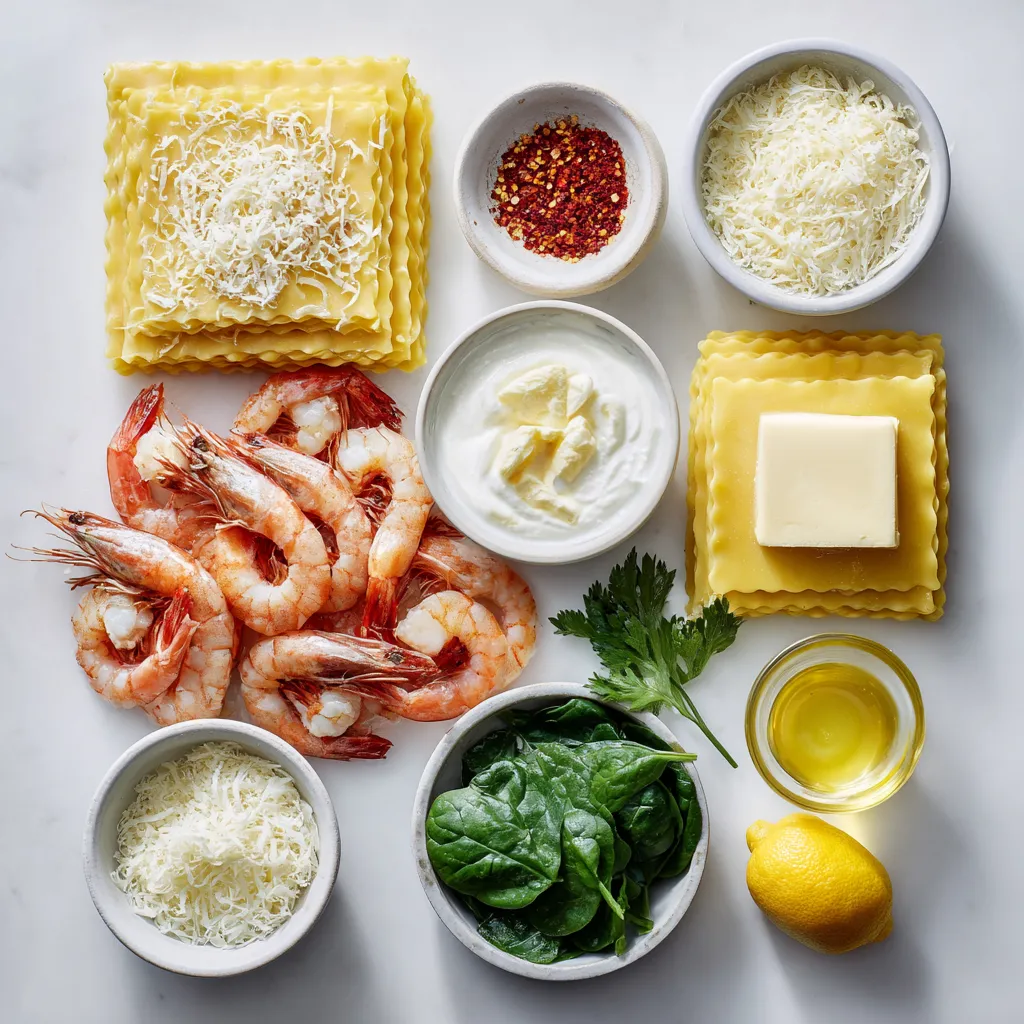 - Assemble Lasagna: In a 9x13 inch baking dish, spread a layer of the cream sauce on the bottom. Place three lasagna noodles on top, followed by half of the shrimp, half of the chopped spinach, and another layer of cream sauce. Repeat with another three noodles, the remaining shrimp, the remaining spinach, and another layer of sauce. Top with the final three noodles and finish with the rest of the cream sauce. Sprinkle mozzarella cheese on top.