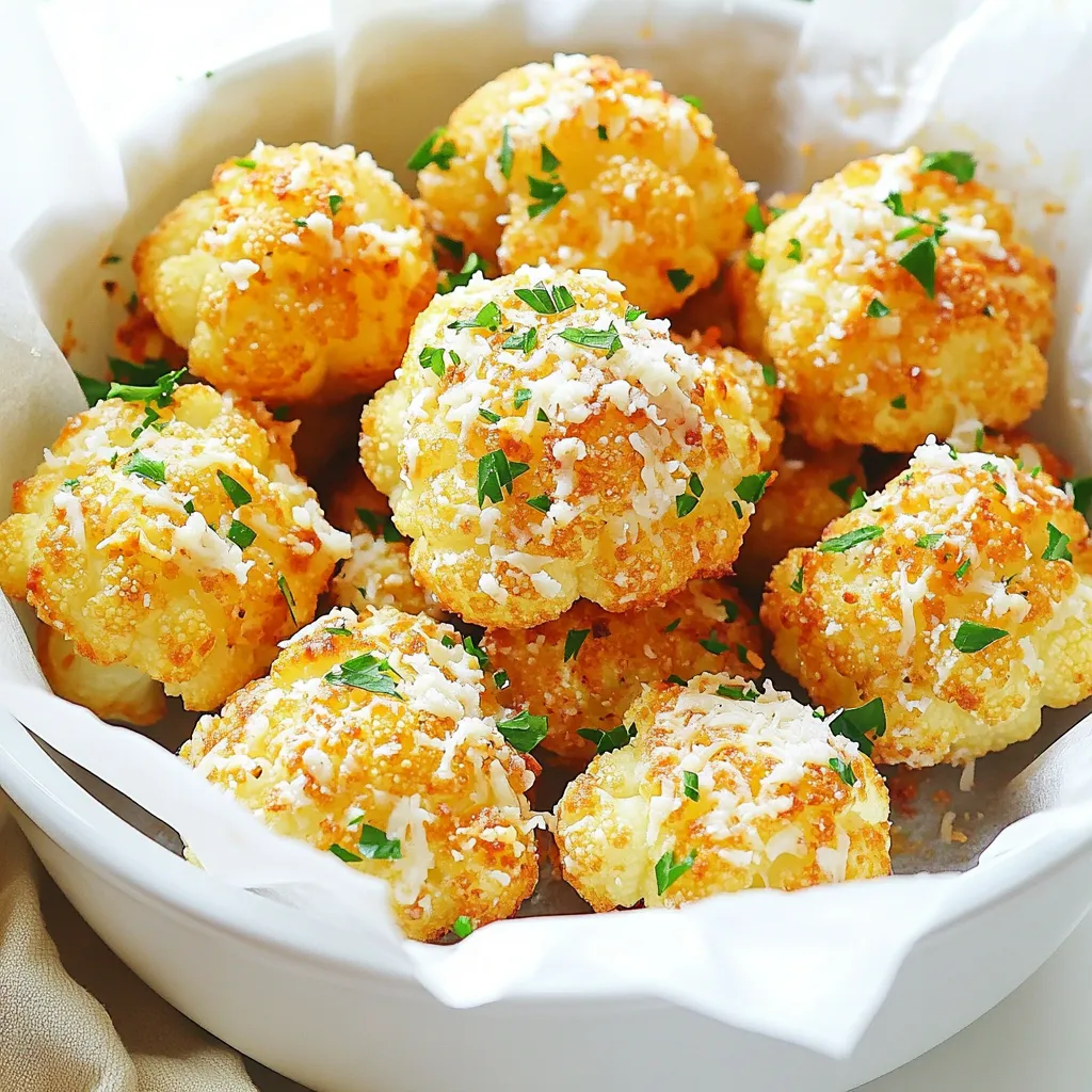 Preheat your air fryer to 375°F (190°C) for about 5 minutes. Place the cauliflower in the basket in a single layer. Do not crowd the basket; this helps them cook better. Air fry for 15-18 minutes. Shake the basket halfway through cooking. This ensures even crispiness. When they are golden brown, remove them from the fryer. Let them cool for a couple of minutes. You can add chopped parsley on top for extra color. Enjoy your delicious Garlic Parmesan Cauliflower!