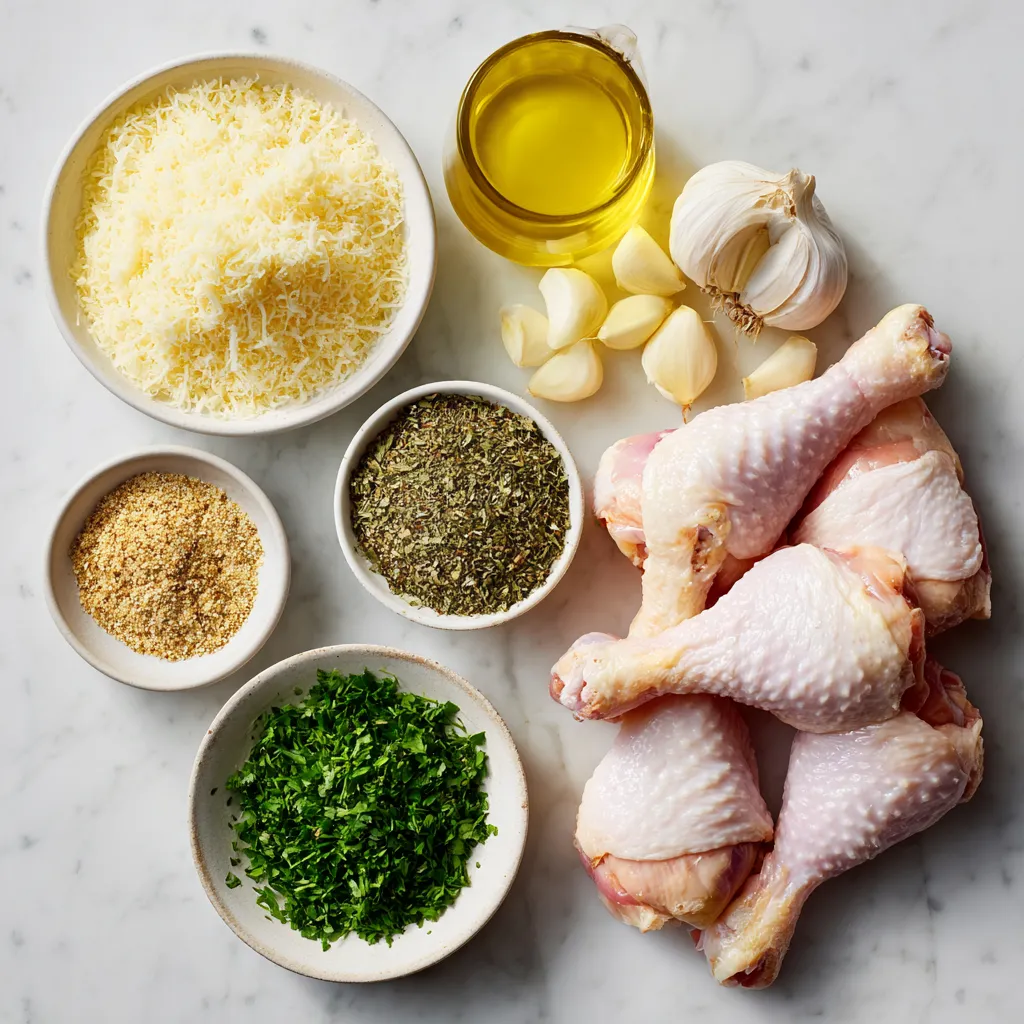 For these tasty Garlic Parmesan drumsticks, gather the following: