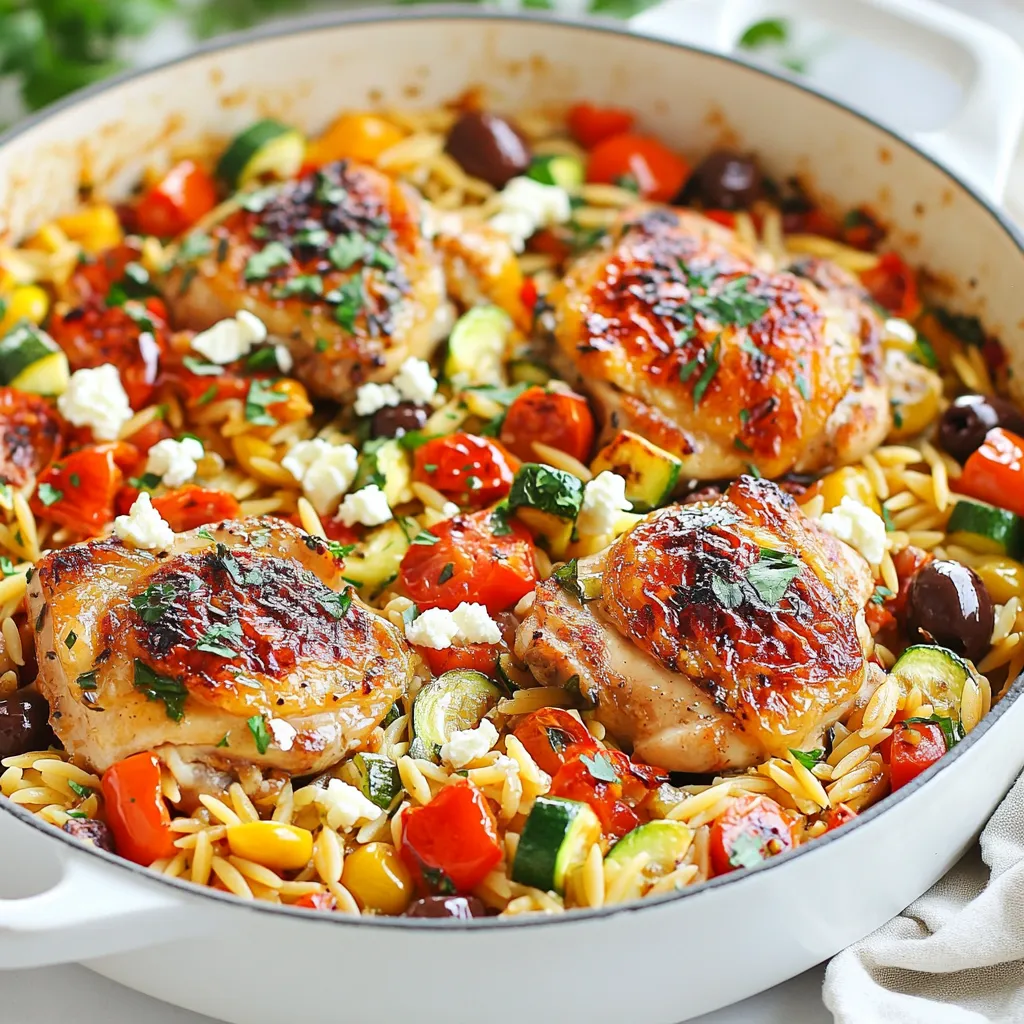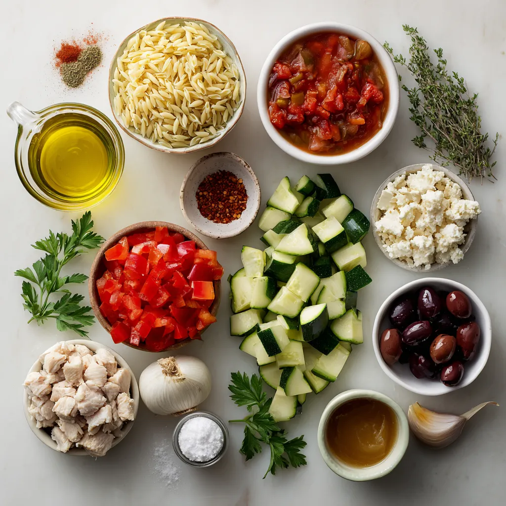 The main ingredients in this dish create a wonderful flavor base. The chicken thighs bring a juicy, tender texture. Orzo pasta adds a nice bite and absorbs the dishβs flavors. Fresh vegetables like onion, garlic, red bell pepper, and zucchini add color and nutrition. Diced tomatoes and chicken broth help form a rich, savory sauce. The herbs and spices enhance the taste, making each bite delightful.