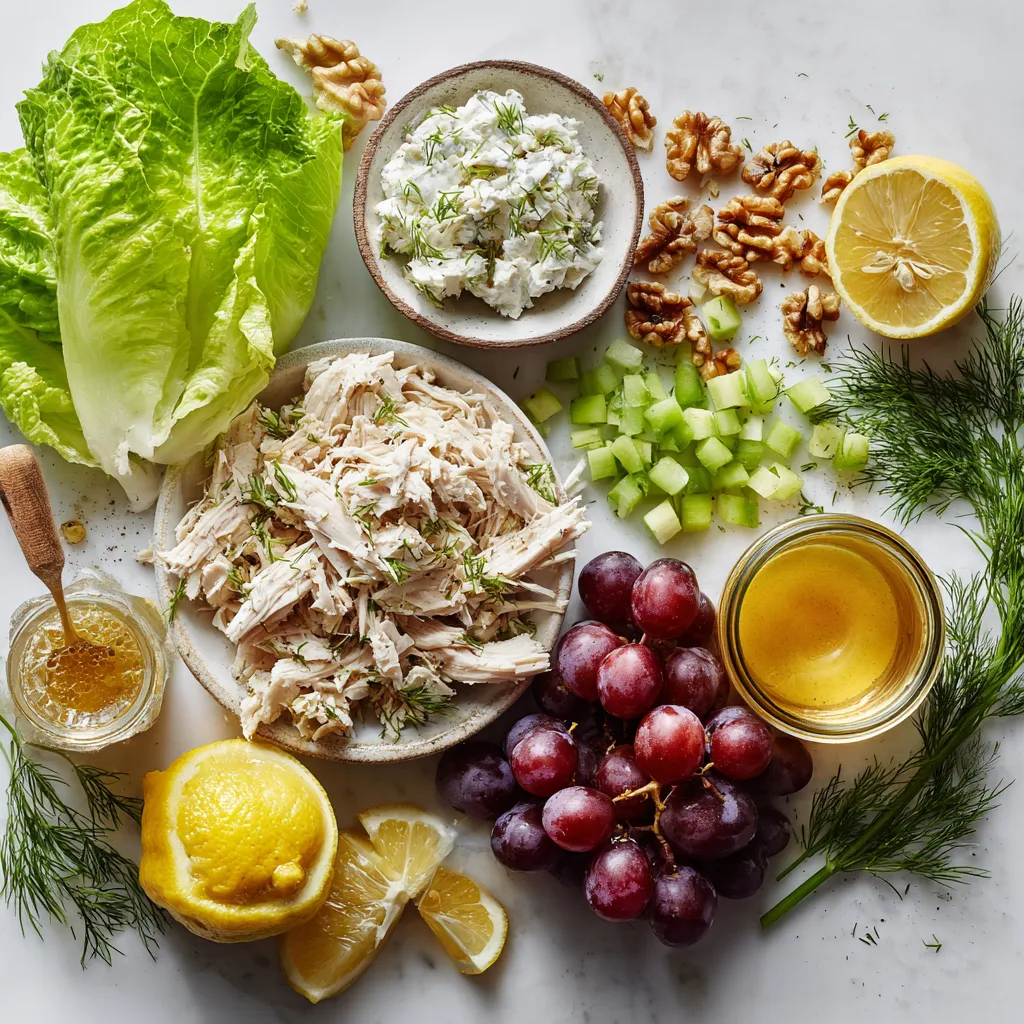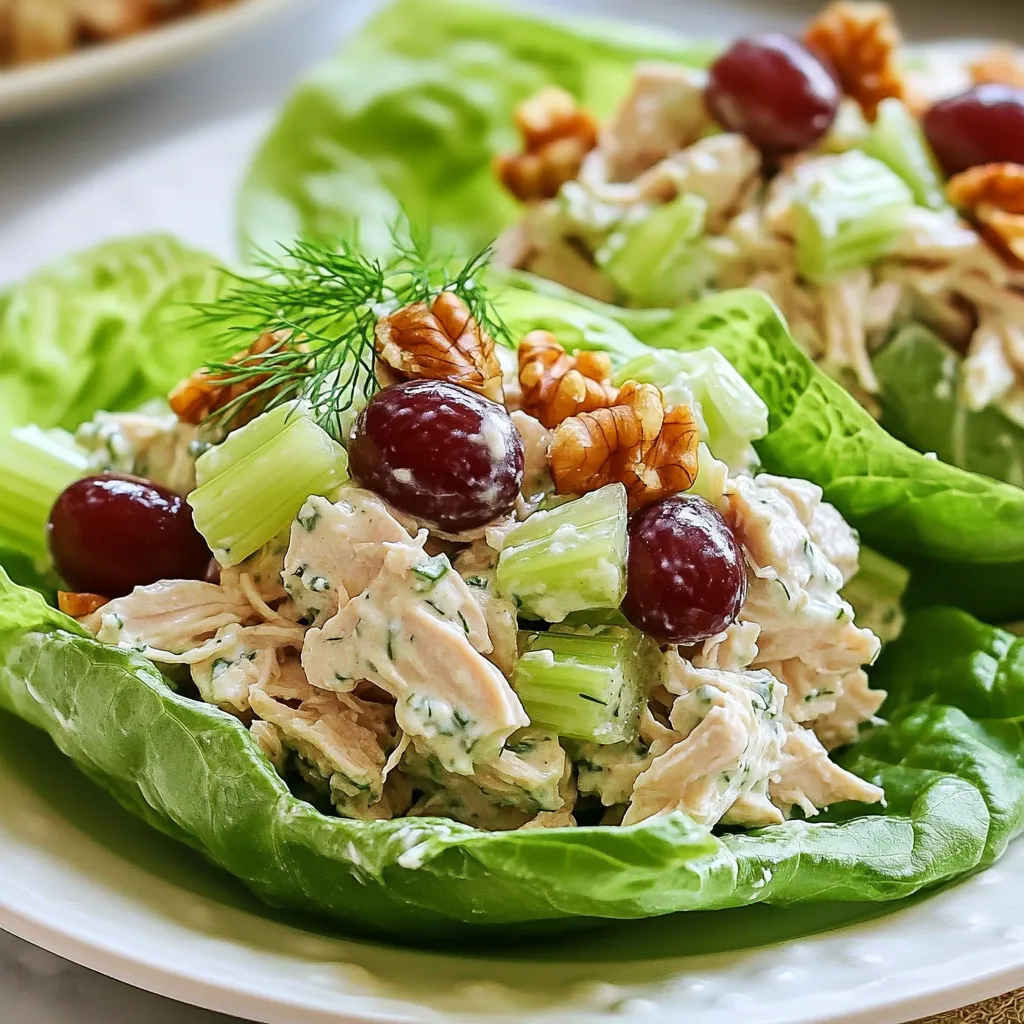 To make Greek Yogurt Chicken Salad Lettuce Wraps, you need: - 2 cups cooked chicken, shredded - 1 cup plain Greek yogurt - 1/2 cup celery, finely chopped - 1/2 cup red grapes, halved - 1/4 cup walnuts, roughly chopped - 1 tablespoon Dijon mustard - 1 tablespoon honey - 1 tablespoon fresh dill, chopped (or 1 teaspoon dried dill) - Juice of 1 lemon - Salt and pepper to taste - 8 large lettuce leaves (such as romaine or butter lettuce) You can add these ingredients to enhance the dish: - Chopped green onions for a fresh bite - Sliced almonds for a crunchy texture - A dash of cayenne pepper for some heat - Diced apples for a sweet twist Each serving of Greek Yogurt Chicken Salad Lettuce Wraps contains: - Calories: About 250 - Protein: 25g - Fat: 10g - Carbohydrates: 15g - Fiber: 2g - Sugar: 5g This dish is low in carbs and high in protein. It makes a great meal choice for many diets. Enjoy the fresh taste while also nourishing your body! {{ingredient_image_1}} Start by gathering all your ingredients. You will need: - 2 cups cooked chicken, shredded - 1 cup plain Greek yogurt - 1/2 cup celery, finely chopped - 1/2 cup red grapes, halved - 1/4 cup walnuts, roughly chopped - 1 tablespoon Dijon mustard - 1 tablespoon honey - 1 tablespoon fresh dill, chopped - Juice of 1 lemon - Salt and pepper to taste - 8 large lettuce leaves Make sure your chicken is cooked and shredded. I like to use leftover chicken for this. It saves time and adds great flavor. Now, chop your celery, halved grapes, and walnuts. In a large bowl, combine the shredded chicken and Greek yogurt. Mix well until they blend nicely. Next, add the chopped celery, halved grapes, and walnuts. Stir gently to keep everything intact. In a small bowl, whisk together the Dijon mustard, honey, dill, lemon juice, salt, and pepper. This dressing brings all the flavors together. Pour this over the chicken mixture. Mix gently again. You want every piece coated with that yummy dressing. Now, lay out your large lettuce leaves on a platter. Spoon some of the chicken salad mixture into each leaf. Aim for even portions to make nice wraps. If you want, you can add some extra dill or walnuts on top for a crunch. These wraps are not just easy to make; they look great too! Enjoy your tasty Greek yogurt chicken salad lettuce wraps! Choose chicken that is cooked and shredded. You can use grilled, baked, or rotisserie chicken. Make sure it's moist and flavorful. This makes your salad tasty. If you cook the chicken yourself, season it well. A little salt and pepper can go a long way. When mixing, be gentle. You want to keep the chicken pieces chunky. Start by mixing the Greek yogurt with the chicken. Then, add in the celery, grapes, and walnuts. Stir slowly to blend the flavors. The goal is a creamy mix without breaking the chicken too much. You can make this salad ahead of time. Prepare it the night before for a quick lunch. Store it in an airtight container in the fridge. Just keep the lettuce separate until you are ready to eat. This keeps the lettuce fresh and crisp. Enjoy your meal prep with ease! Pro Tips Use Leftover Chicken: This recipe is perfect for using up any leftover roasted or grilled chicken you have on hand. Customize Your Ingredients: Feel free to swap out walnuts for your favorite nuts or add in diced apples for a sweeter crunch. Make It Ahead: Prepare the chicken salad a day in advance for a quick lunch option; just keep the lettuce separate until serving. Experiment with Herbs: Try adding fresh parsley or cilantro for a different flavor profile that complements the Greek yogurt. {{image_2}} You can easily change the recipe to suit your taste. Instead of walnuts, try almonds or pecans for a new crunch. If you want a sweeter flavor, use diced apples or dried cranberries instead of grapes. You can also swap Greek yogurt for cottage cheese for a different texture. These changes keep the dish fresh and exciting. You can make this dish vegetarian or vegan. For a vegetarian version, replace chicken with chickpeas or tofu. For a vegan option, use plant-based yogurt. This way, you keep the creamy texture and flavor without any animal products. Add extra veggies like bell peppers or carrots to make it more filling. These wraps are great for lunch or dinner. Serve them with a side of fresh fruit or a light salad. You can also use them as a party appetizer. Just arrange the wraps on a platter for easy sharing. For a fun twist, serve them with a dipping sauce like spicy mustard or a tangy vinaigrette. To keep your Greek yogurt chicken salad fresh, place it in an airtight container. Make sure to seal it well to prevent air from getting in. Store it in the fridge. This way, the salad stays cool and tasty. I do not recommend freezing Greek yogurt chicken salad. The texture of Greek yogurt changes when frozen. The chicken may also lose its flavor. It’s best enjoyed fresh. The chicken salad lasts about 3 to 4 days in the fridge. If you use fresh ingredients, they will stay fresh longer. Check the yogurt’s expiration date. Once opened, Greek yogurt stays good for about 5 to 7 days. Always use your senses to check if food is safe to eat. Yes, you can use rotisserie chicken. This saves time and adds flavor. Just shred the chicken and mix it with Greek yogurt. The salad will still taste fresh and delicious. Rotisserie chicken gives you a quick option for busy days. Plus, it helps you avoid extra cooking. Greek yogurt chicken salad can last up to three days in the fridge. Make sure to store it in an airtight container. This keeps it fresh and safe to eat. Before serving leftovers, check for any signs of spoilage. If it smells off or looks funny, throw it away. You have many choices for wraps. You can use whole wheat tortillas or rice paper. If you prefer something low-carb, try cucumber slices or bell pepper strips. Each option gives a nice crunch and flavor. Feel free to get creative with your wraps! This article covered how to make a tasty chicken salad.