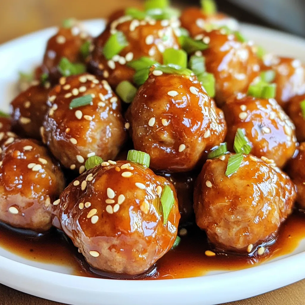 When serving, arrange the meatballs on a platter. Drizzle with extra sauce for a nice touch. Sprinkle sesame seeds and chopped green onions on top. This makes them look appetizing.