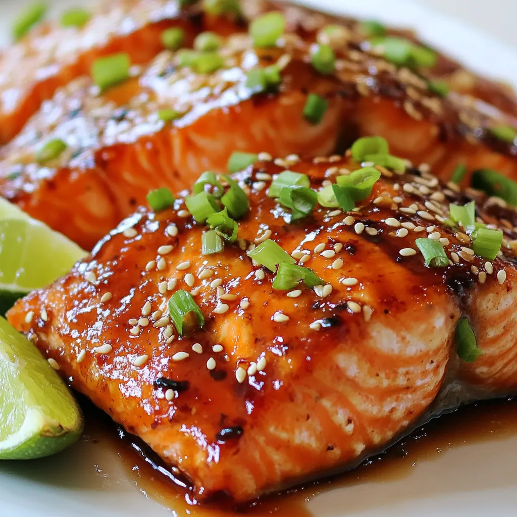 - Garnish and Serve: Once out of the oven, sprinkle the sesame seeds and chopped green onions over the salmon. Serve with lime wedges on the side.