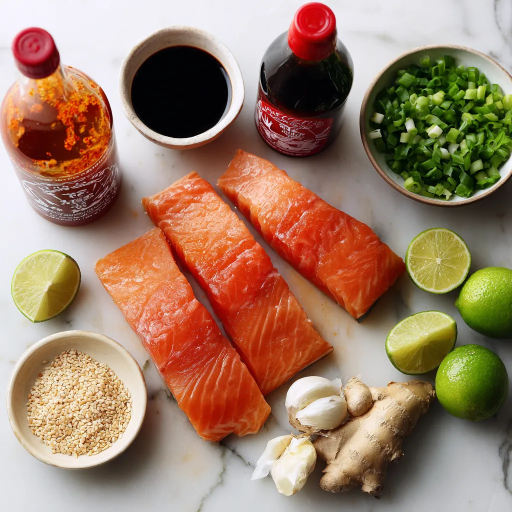 Gather these ingredients, and you are ready to make a tasty Honey Sriracha Salmon.