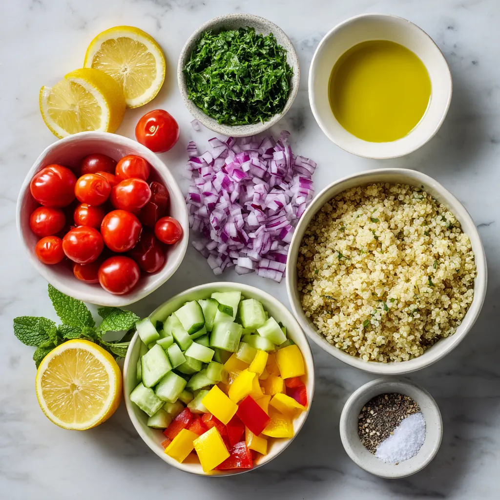 Quinoa is the star of this dish. It is light and fluffy. Rinsing it removes the bitter coating. I use vegetable broth for flavor, but water works too. The veggies add color and crunch. Cherry tomatoes bring sweetness. Cucumber and bell pepper add freshness. Red onion gives a subtle bite. Fresh herbs, like parsley and mint, brighten the salad.