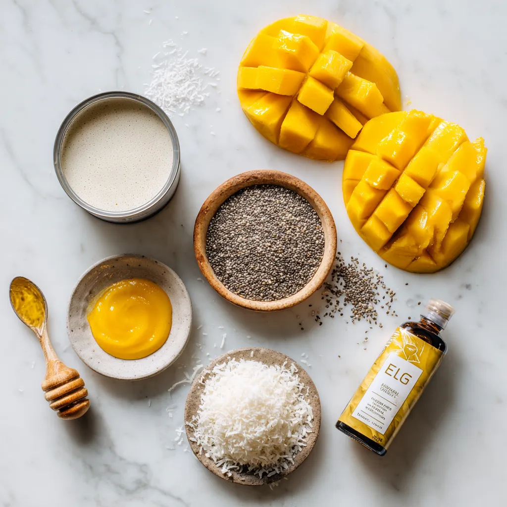 To make a delicious Mango Coconut Chia Pudding, you need a few key ingredients:
