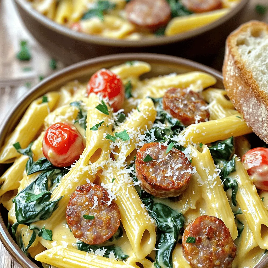 Gathering the right ingredients makes this dish shine. The penne pasta holds the creamy sauce well. The andouille sausage adds a spicy kick. I like using olive oil for cooking; it gives a nice flavor.