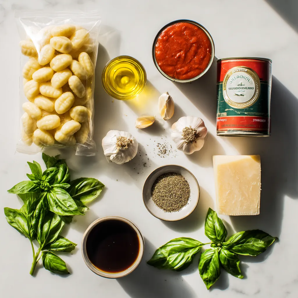 One-Pot Creamy Tomato Basil Gnocchi needs simple, fresh ingredients. Each item adds flavor and comfort. Gnocchi serves as the main star, bringing a soft and pillowy texture. Olive oil helps to sauté garlic, which gives a warm aroma.