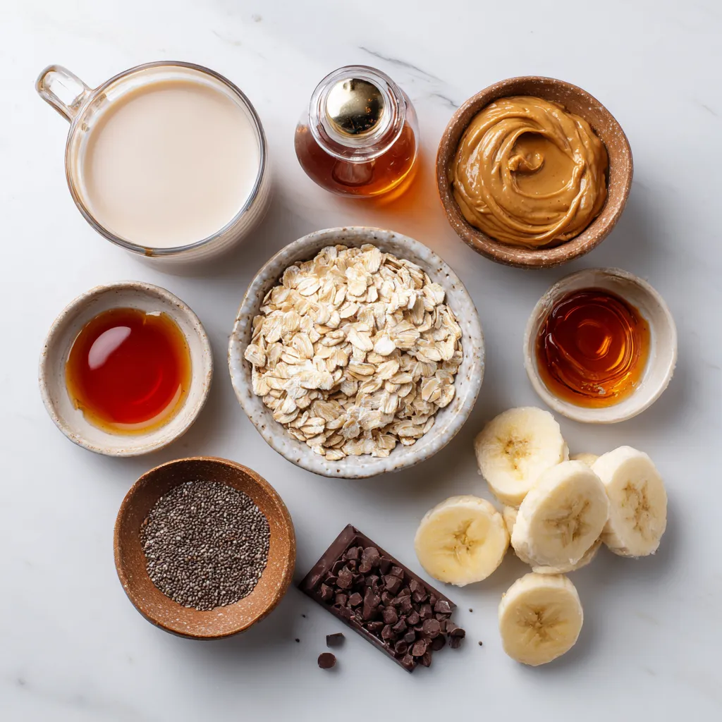 To make peanut butter banana overnight oats, you need simple and wholesome ingredients. Rolled oats are the star, providing fiber and energy. Almond milk adds creaminess and a nutty flavor. Natural peanut butter gives protein and richness. A ripe banana brings sweetness and moisture.