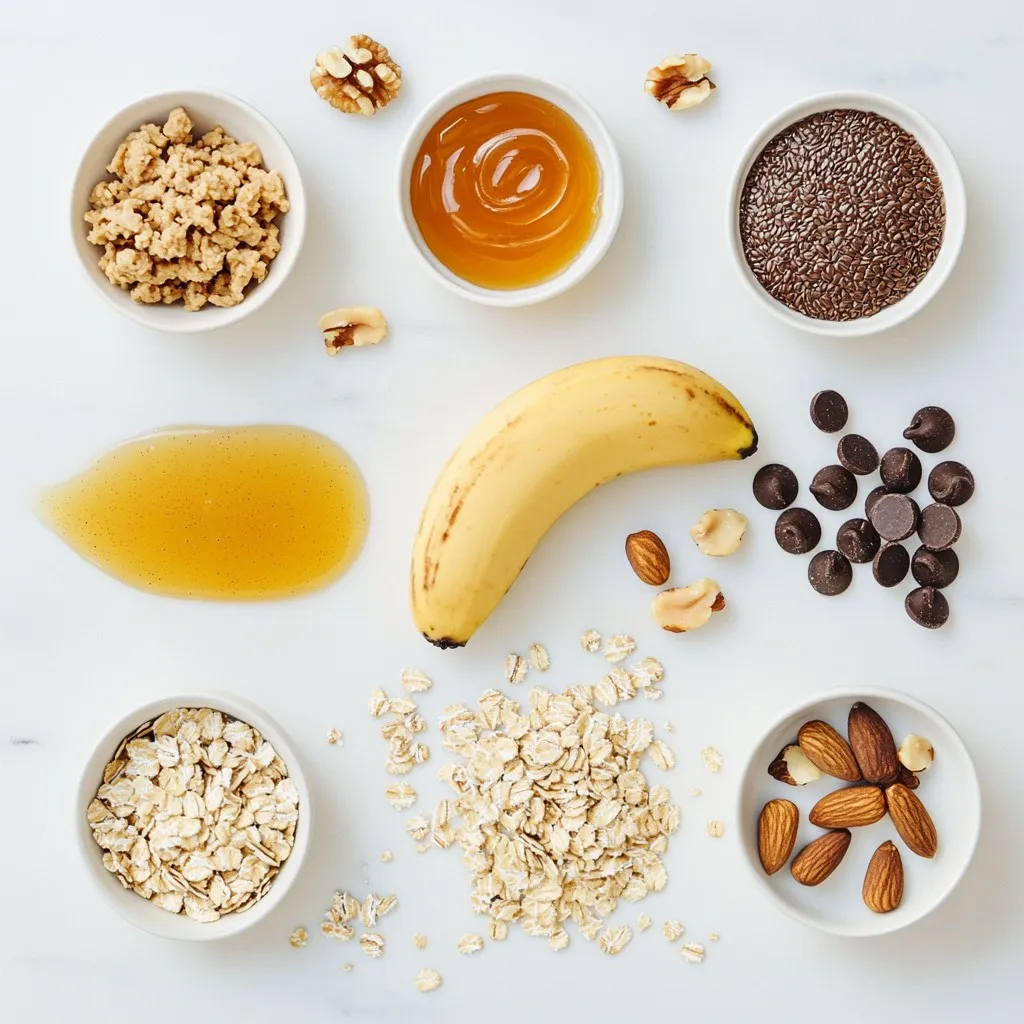 To make peanut butter oatmeal bars, gather these tasty ingredients. Rolled oats form the base. They provide fiber and energy. Creamy peanut butter adds rich flavor and protein. Honey or maple syrup gives sweetness. Mashed ripe bananas add moisture and natural sweetness. Ground flaxseed boosts nutrition and acts as a binder. Vanilla extract enhances the flavor. A pinch of salt brings out all the other flavors.