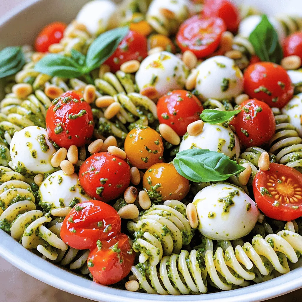 This pasta salad uses simple, fresh ingredients for a delicious dish. You learned about cooking rotini, mixing it with tomatoes and mozzarella, and adding tasty pesto. Remember, you can customize the salad with different flavors and ingredients. Store leftovers properly to keep them fresh. By following these tips and variations, you can enjoy a delightful salad anytime. I hope you feel inspired to create your own pesto Caprese pasta salad!