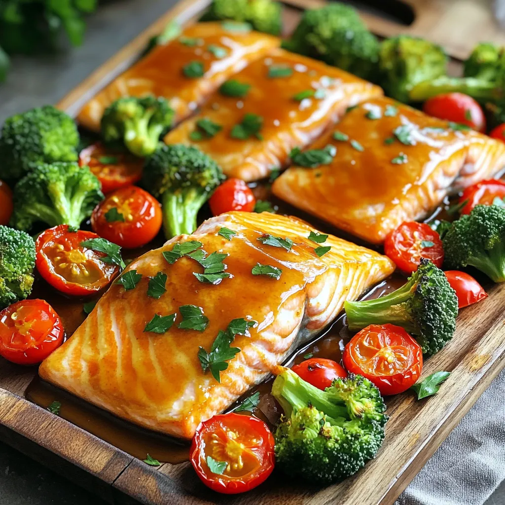 Presentation matters! Serve the salmon and veggies on a big platter. Drizzle any leftover glaze over the top. This makes the dish look extra tasty. Pair it with a simple side like rice or quinoa. A fresh salad is also a great choice. You can even add some crusty bread to soak up the glaze. This meal is colorful and healthy, perfect for any family dinner. Everyone will enjoy it!