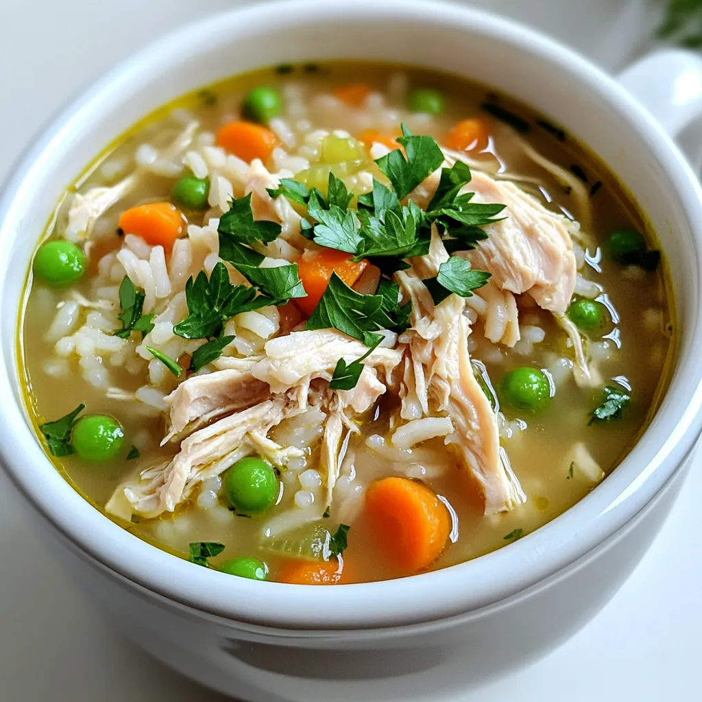 The herbs, garlic, and seasonings fill the soup with rich flavor. Using low-sodium chicken broth keeps it healthy, while the frozen peas add a pop of green. Finally, parsley gives a fresh finish. With these ingredients, you will craft a bowl of comfort that everyone will love.