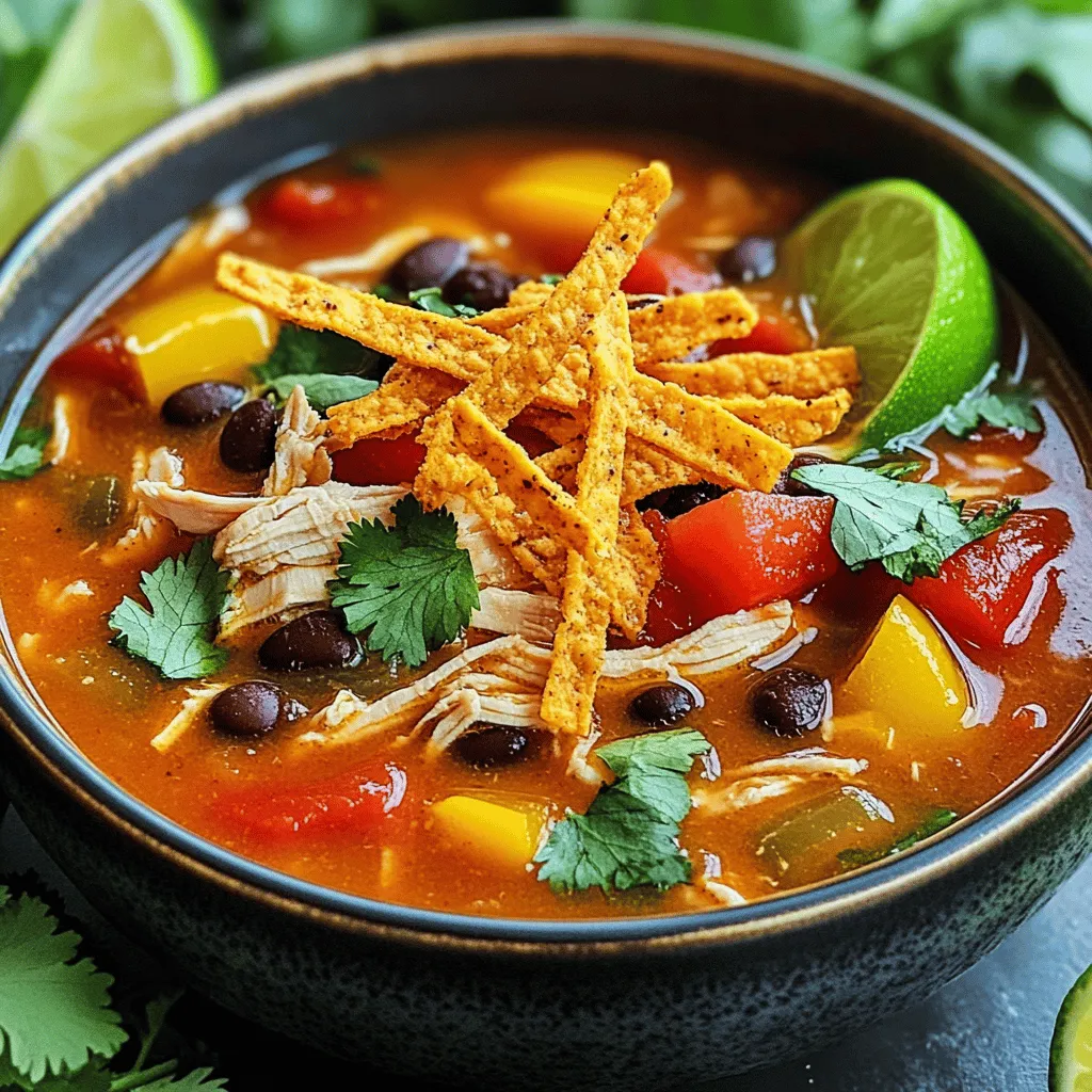 Garnishes make your soup look and taste better. Fresh cilantro adds brightness and a fresh taste. Tortilla strips give a nice crunch. Lime wedges let you add a zesty finish. Squeeze some lime over your bowl for a pop of flavor!