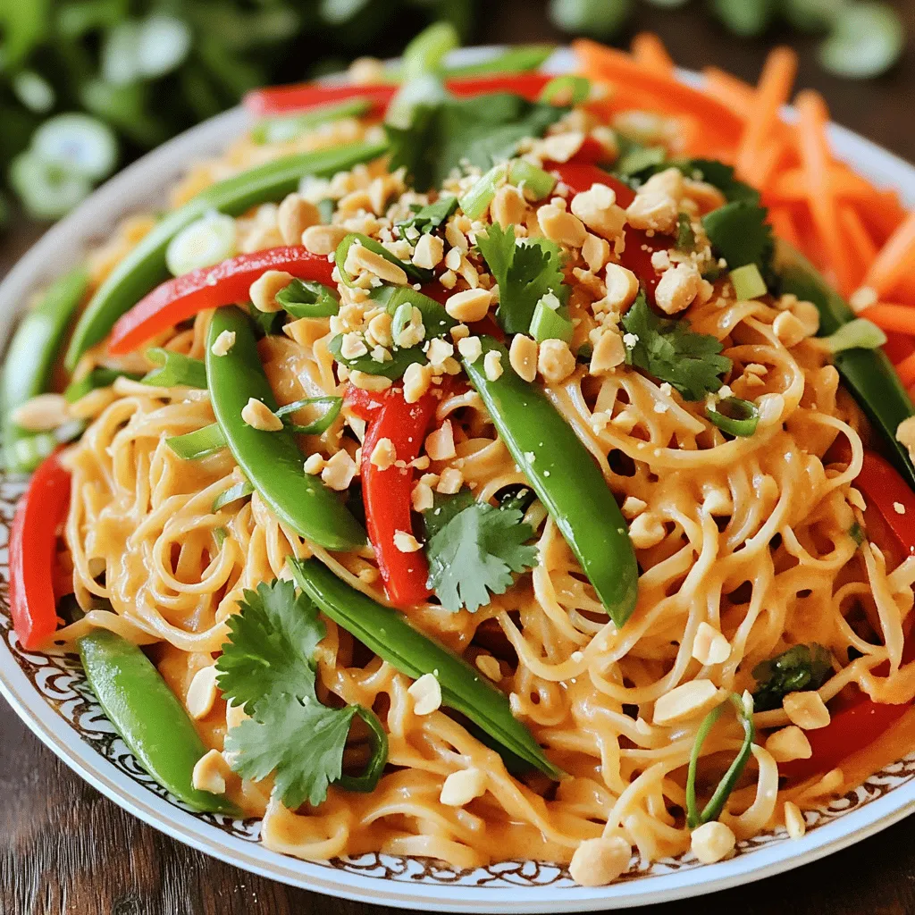 To get the best sauce, start with smooth peanut butter. Mix the peanut butter with soy sauce, lime juice, sesame oil, honey, and Sriracha in a bowl. If the sauce is too thick, add a tablespoon of water. This helps it drizzle nicely over the noodles. The right consistency makes a big difference.