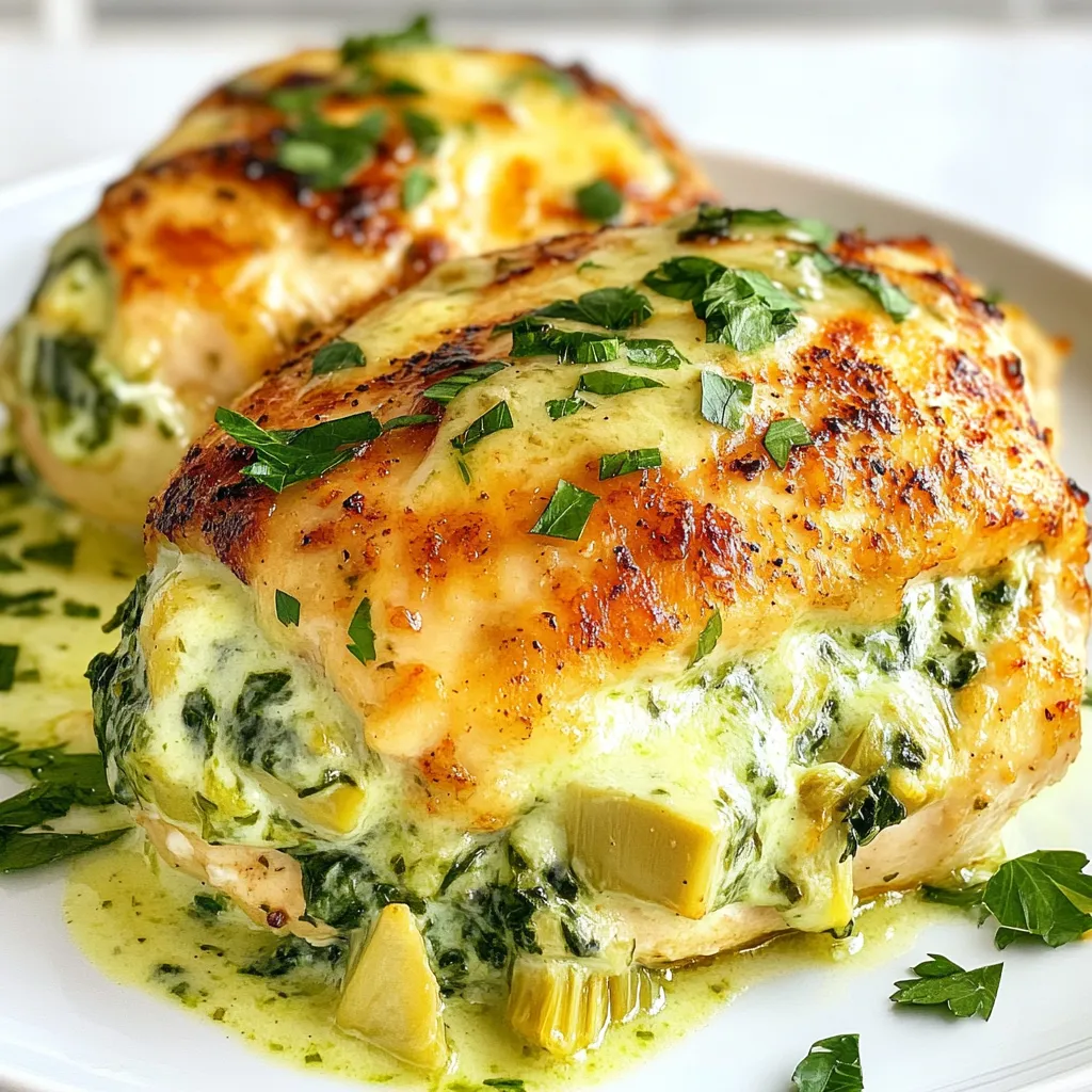 - Use Fresh Ingredients: Opt for fresh spinach and quality artichoke hearts for a more vibrant flavor and texture in your stuffed chicken.