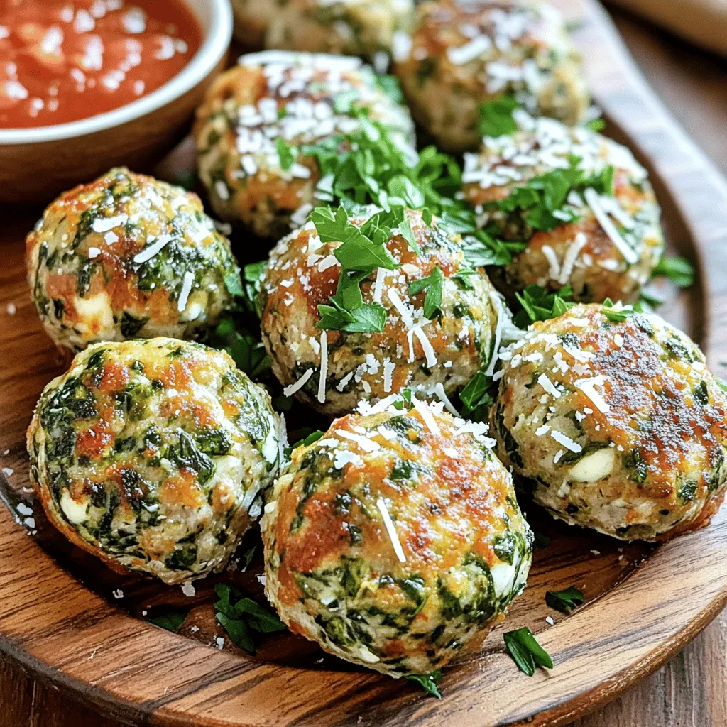 ![When you make Spinach Garlic Mozzarella Meatballs, you will need the following ingredients: - 1 lb ground beef or turkey - 1 cup fresh spinach, finely chopped - 2 cloves garlic, minced - 1 cup breadcrumbs - 1/2 cup shredded mozzarella cheese - 1/4 cup grated Parmesan cheese - 1 large egg - 1 teaspoon dried oregano - 1 teaspoon salt - 1/2 teaspoon black pepper - 1/4 cup fresh parsley, chopped - Marinara sauce, for serving These ingredients come together to create a dish that is rich in flavor. The ground meat forms the base, while the spinach adds a fresh touch. Garlic gives a nice kick, and the cheeses bring creaminess and depth. Using fresh herbs like parsley enhances the taste. Dried oregano adds an Italian flair. Don't forget the marinara sauce for serving—it ties everything together. You can check the [Full Recipe] for more details on how to combine these tasty elements. 1. Preheat the Oven: Start by preheating your oven to 400°F (200°C). This helps the meatballs cook evenly and get that nice golden color. Next, line a baking sheet with parchment paper. This makes clean-up easy and keeps the meatballs from sticking. 2. Mix Ingredients: In a large bowl, add the ground beef or turkey, chopped spinach, minced garlic, breadcrumbs, shredded mozzarella, grated Parmesan, egg, oregano, salt, pepper, and parsley. Use your hands to mix everything. Make sure it is well combined, but don’t overmix. 3. Form Meatballs: With your hands, scoop about 2 tablespoons of the mixture and roll it into a ball. Place each meatball on the prepared baking sheet. Leave some space between them. This helps them cook evenly and brown nicely. 1. Bake Meatballs: Place the baking sheet in the preheated oven. Bake the meatballs for 20-25 minutes. They should be golden brown and cooked through. A meat thermometer should read 165°F (74°C) when done. 2. Heat Marinara Sauce: While the meatballs bake, take a small saucepan and add your marinara sauce. Heat it over medium-low heat. Stir occasionally until it is warmed through. This will be perfect for serving with your meatballs. - Serve with Marinara Sauce: Once your meatballs are done, take them out of the oven. Let them cool for a few minutes. Serve them with your warm marinara sauce. You can drizzle the sauce over the meatballs or place it on the side for dipping. - Suggested Pairings: For a complete meal, serve these meatballs with crusty bread or pasta. They taste great with spaghetti, making for a comforting dish. Garnish with some extra parsley or Parmesan for a beautiful touch. For the full recipe, check out the Spinach Garlic Mozzarella Meatballs. Enjoy your cooking! To make perfect meatballs, start with the right ground meat. I like using ground beef, but turkey works well too. Choose a blend that has some fat. This keeps the meatballs moist. Mix the meat with your hands, but don’t overdo it. Overmixing makes them tough. Aim for a light touch. When forming the meatballs, keep them about the size of a golf ball. This helps them cook evenly. Herbs and spices can really boost flavor. I love adding fresh basil or thyme. You can also try a pinch of red pepper flakes for some heat. Adding extra veggies is easy too. Zucchini or grated carrots blend well and add moisture. Just make sure to chop them finely. This way, they mix in smoothly without changing the texture. Baking meatballs is simple and healthy. They cook evenly and turn golden brown. If you want a crispy outside, try pan-frying them first. Air frying is another great option. It gives you a nice crust with less oil. Whichever method you choose, keep an eye on them. Cook until they reach 160°F (70°C) for safe eating. {{image_2}} You can easily swap out ingredients for different diets. If you prefer plant-based options, use ground veggie meat instead of beef or turkey. This change keeps the dish tasty and adds a new flair. For cheese lovers who need dairy-free, try almond or cashew cheese. These alternatives melt well and still give that cheesy goodness. To give your meatballs an Italian twist, add extra spices like basil or thyme. A sprinkle of red pepper flakes can also spice things up. If you like a touch of sweetness, mix in some finely chopped bell peppers. These small changes can create a whole new flavor profile. Serve these meatballs over spaghetti for a classic dish. They pair nicely with marinara sauce, making a comforting meal. You can also turn them into meatball subs. Just place the meatballs in a crusty roll and add your favorite toppings. Sliders are another fun option. Use smaller meatballs on mini buns for a great party snack. Explore these variations to make each meal exciting. For the full recipe, check out the Spinach Garlic Mozzarella Meatballs 🥬🧄 section. After you make your spinach garlic mozzarella meatballs, let them cool down. Place them in a sealed container. This step keeps them fresh. Store them in the fridge for up to four days. If you want to enjoy them later, freezing is a great option. To freeze meatballs, first, place them in a single layer on a baking sheet. Freeze them for about one hour. Once frozen, transfer them to a freezer-safe bag. This method helps prevent them from sticking together. You can freeze the meatballs for up to three months. When you’re ready to eat, thaw them overnight in the fridge. Reheat them in the oven or microwave until hot. If you like quick meals, prep your meatballs in advance. Form them into balls and store them in a container. You can also portion them into meal-sized bags. This way, you can grab a serving whenever you need it. Label your bags with the date. This practice ensures you use them before they spoil. How to make meatballs without breadcrumbs? You can use oats or ground nuts instead of breadcrumbs. They will bind the meatball well. Just pulse them in a food processor. You can also try cooked rice or mashed potatoes for a different texture. Can I use frozen spinach instead of fresh? Yes, frozen spinach works great! 