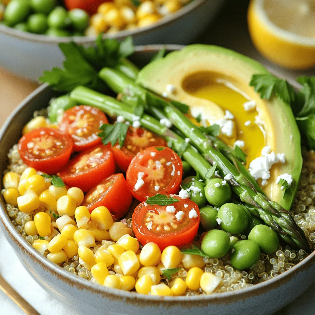 Now it’s time to put your power bowls together! Start with a generous scoop of the fluffy quinoa as the base in each bowl. Next, add the sautéed vegetable mix on top. Slice 1 avocado and arrange it nicely on each bowl. If you like, sprinkle 1/4 cup of crumbled feta cheese on top for extra flavor. Finally, drizzle 1 tablespoon of lemon juice over everything and garnish with 1/4 cup of chopped fresh parsley. Enjoy your beautiful Spring Veggie Power Bowls!
