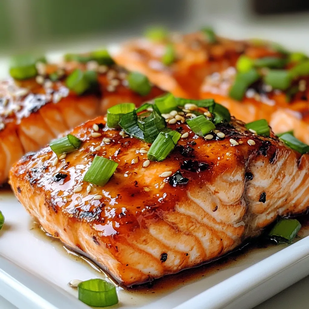 To finish your dish, season the salmon with salt and pepper. Green onions and sesame seeds work well as garnishes. They add color and extra flavor.