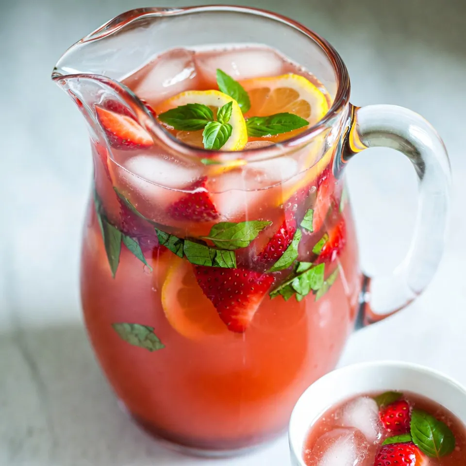 4. Gorgeous Presentation: The vibrant colors of strawberries and fresh basil make this lemonade not only delicious but also visually stunning.