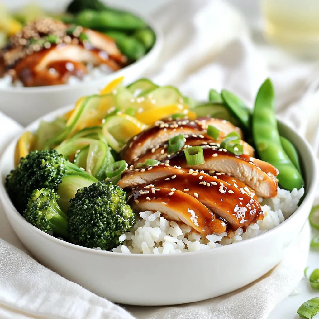 Finally, garnishing makes a big impact. Sprinkle sliced green onions and sesame seeds on top. This adds color and crunch. Your teriyaki chicken rice bowl will not only taste great but also look amazing!